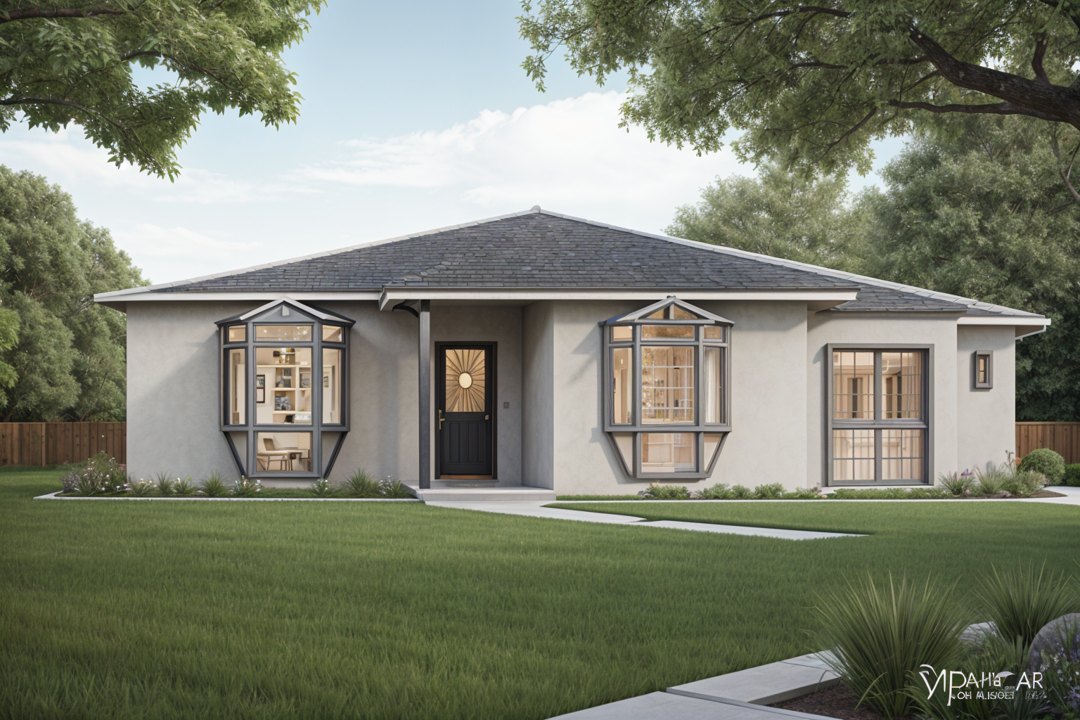 blurry brushed watercolor rendering of modern house with black and medium tone warm wood siding surrounded by oak tree forest and leafy forrest floor architecture