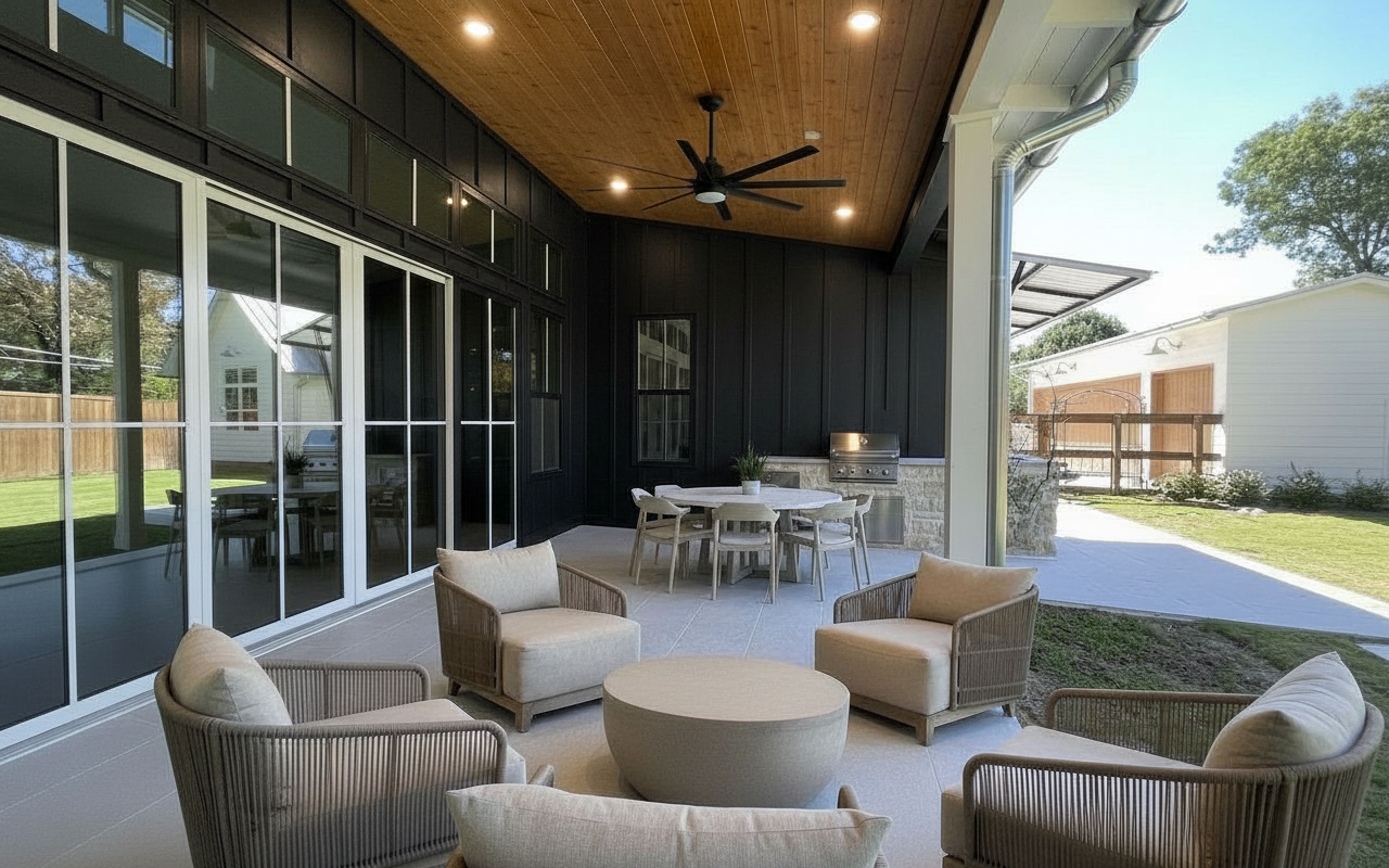 paint column and window framing to black