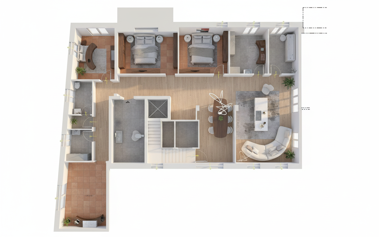 color direction shift wood hue toward a soft taupe with beige and subtle honey undertones reduce cool gray cast by 10 15 remove blue tones increase warmth slightly 10 12 yellow 5 7 red maintain a balanced neutral warmth avoid orange or overly golden tones value texture target a light to medium oak tone keep grain natural soft and low contrast no heavy cathedral grain or striping ensure even coloration across all surfaces no mismatched panels finish matte to low sheen finish 5 10 reflectivity smooth refined surface no gloss or plastic appearance consistency rule all wood elements must read as the same species and finish across the entire scene important preserve lighting exposure shadows and camera angle do not alter stone walls or other materials only adjust wood tones