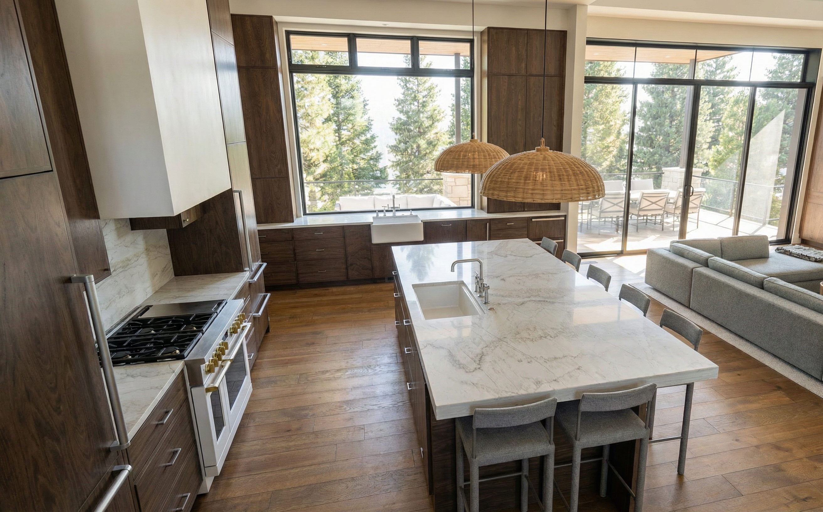 use the provided image as the exact base do not alter move remove or redesign any architectural elements proportions structure openings or layout preserve every detail exactly as shown re render the scene with a softly lit daytime atmosphere replace the lighting with natural diffused daylight that creates soft shadows and a calm balanced brightness throughout the space transform the material palette to a refined contemporary lobby aesthetic while maintaining all existing geometry floor smooth honed limestone flooring in a light neutral tone walls clean white walls with a soft matte finish paneling smooth warm oak wood panels with subtle grain modern and minimal curtains floor to ceiling sheer drapery in soft white gently diffusing daylight furnishings elegant dark gray glass tabletop with a sleek minimal profile lighting should feel soft and ambient with gentle shadowing and no harsh contrast materials should appear soft toned refined and natural the overall mood must feel sophisticated tranquil and inviting with a harmonious balance of textures maintain the original camera angle perspective scale and composition exactly the result should be photorealistic minimalistic yet luxurious with a calm contemporary lobby atmosphere round rug with two tones of gray wool all areas of sheer drapery shown as fine vertical lines should have daylight coming from behind