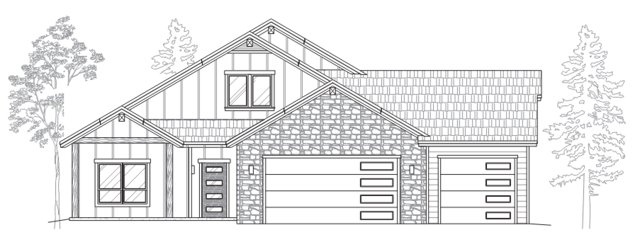 modernist exterior shot please make the body of this house gauntlet grey color with the front beams a dark brown the stone color is eldorado white bark and the fascia and trim color black architecture