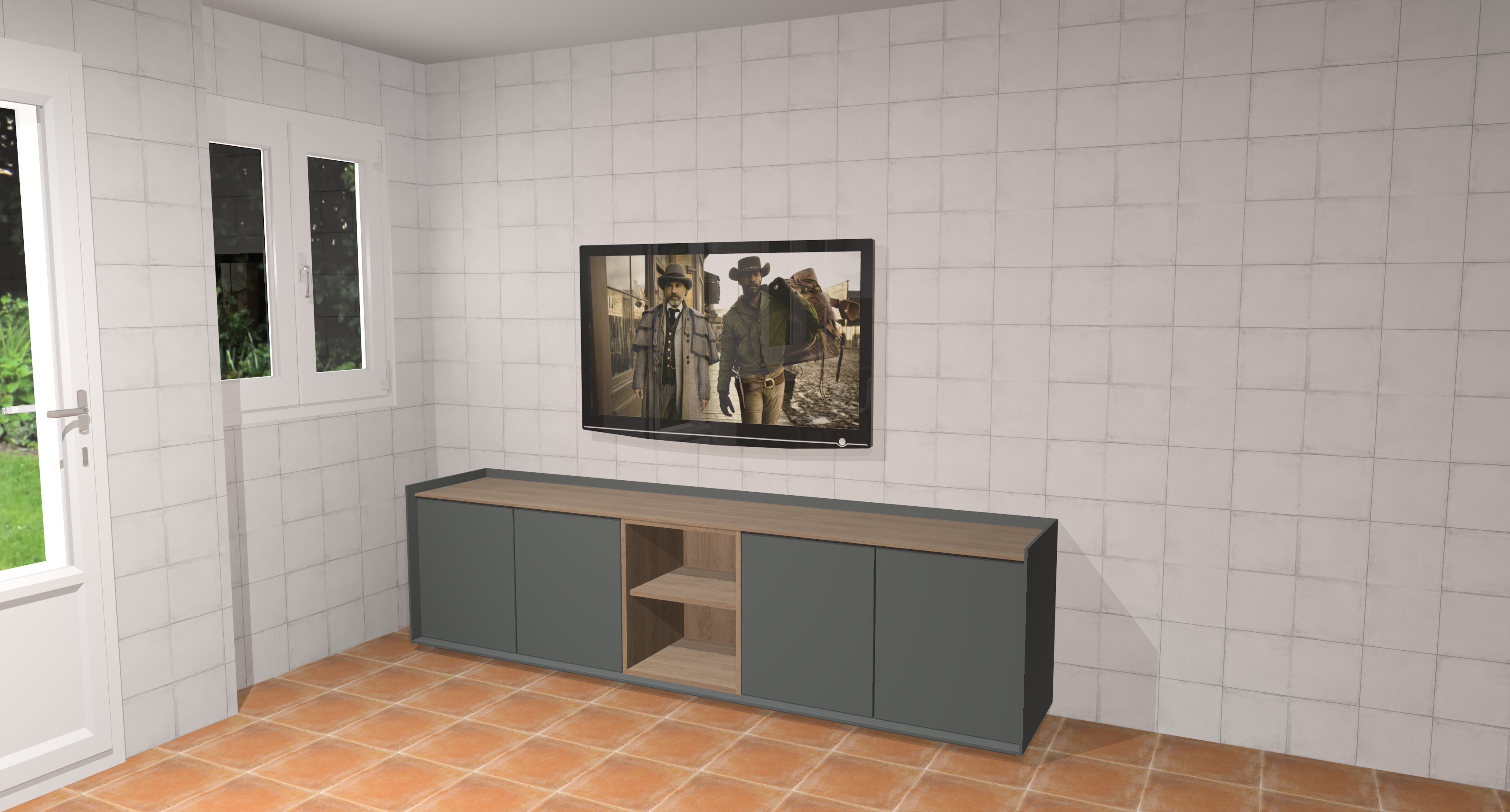 genera una imagen fotorealista a ade decoraci n encima del mueble sal n a ade libros en el m dulo abierto con iluminaci n interior