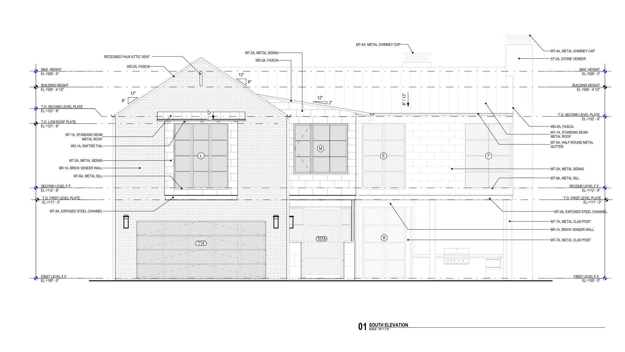modernist exterior shot modern transitional luxury new construction home exterior architectural light cream brick natural unpainted brick with subtle variation and texture black metal framed windows with thin profiles standing seam black metal roof matte finish natural limestone cut stone accents slightly darker than the brick with warm gray undertones black steel and aluminum garage door with large glass panels high end residential architectural photography lighting realistic materials accurate scale clean detailing soft natural daylight neutral sky professional builder marketing render architecture
