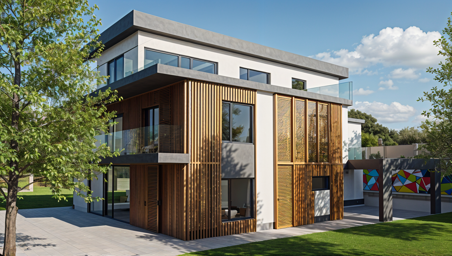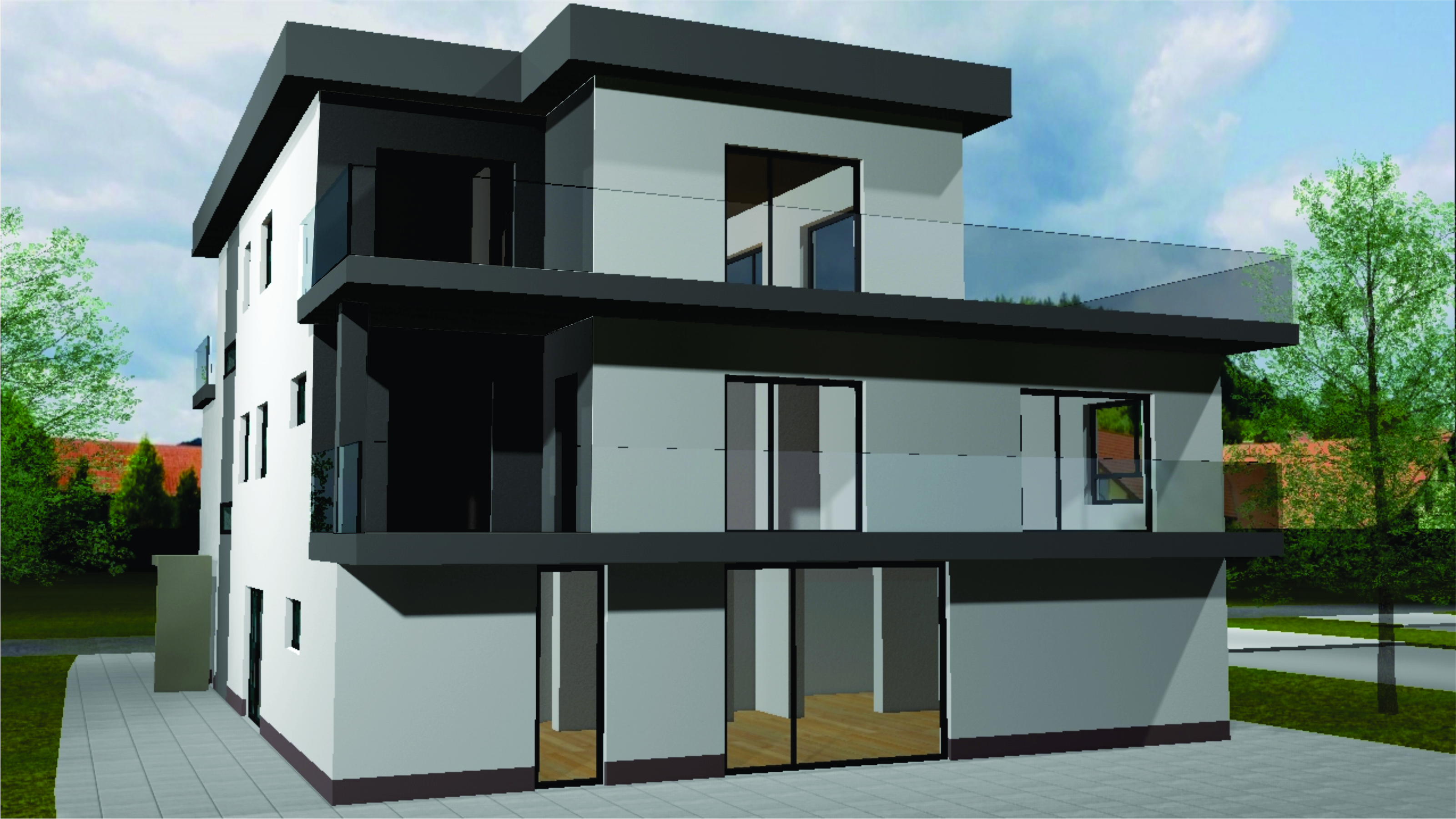 sarineen wide angle shot summer weather add trees sunny with clouds smooth facade architecture