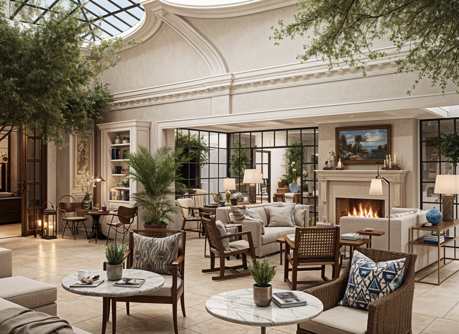 render this image in a realistic style maintaining the exact same composition furnishings and design without adding or removing elements