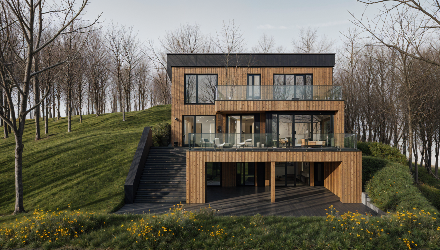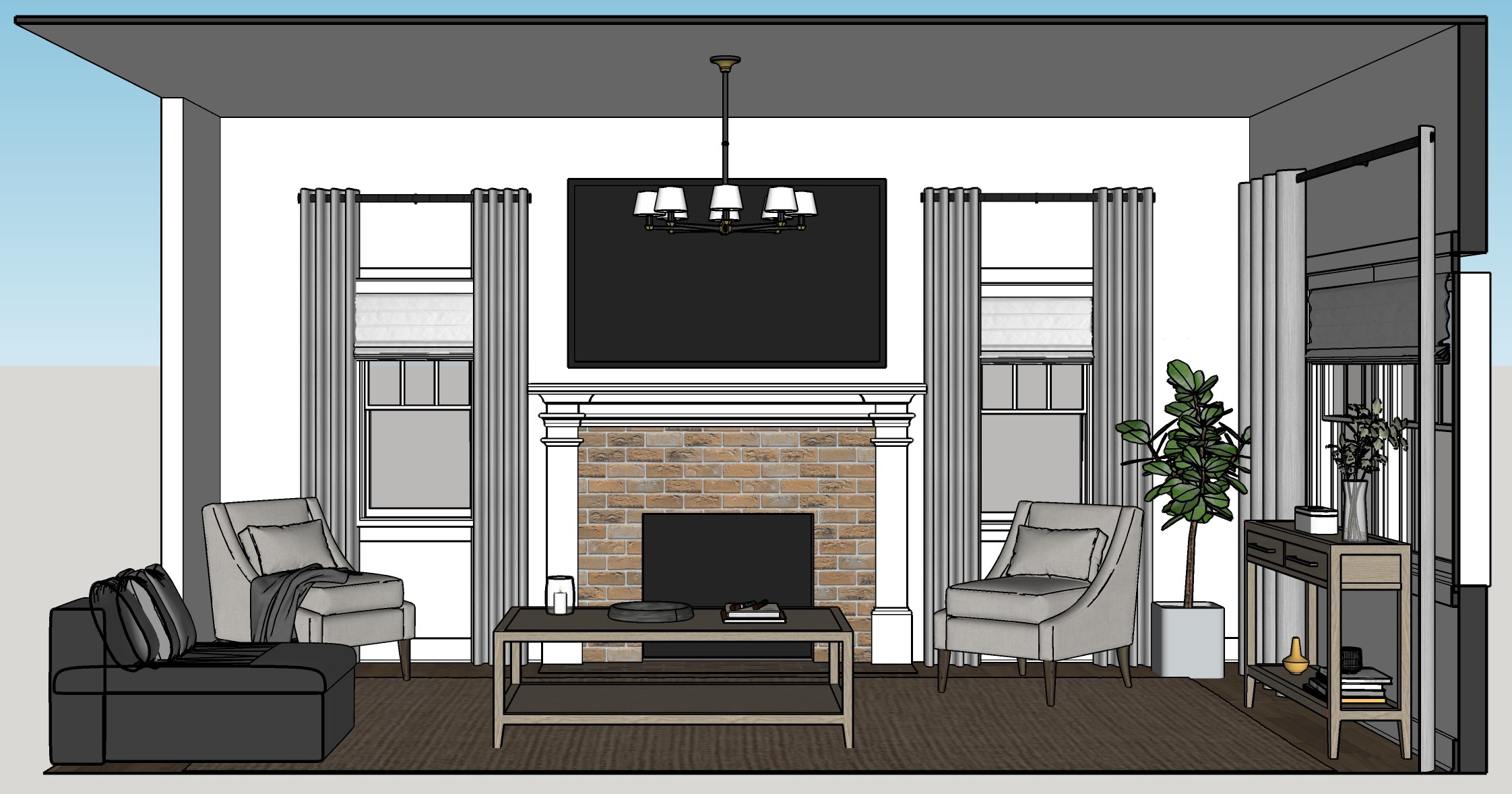 lush yard with trees and flowers visible outside window