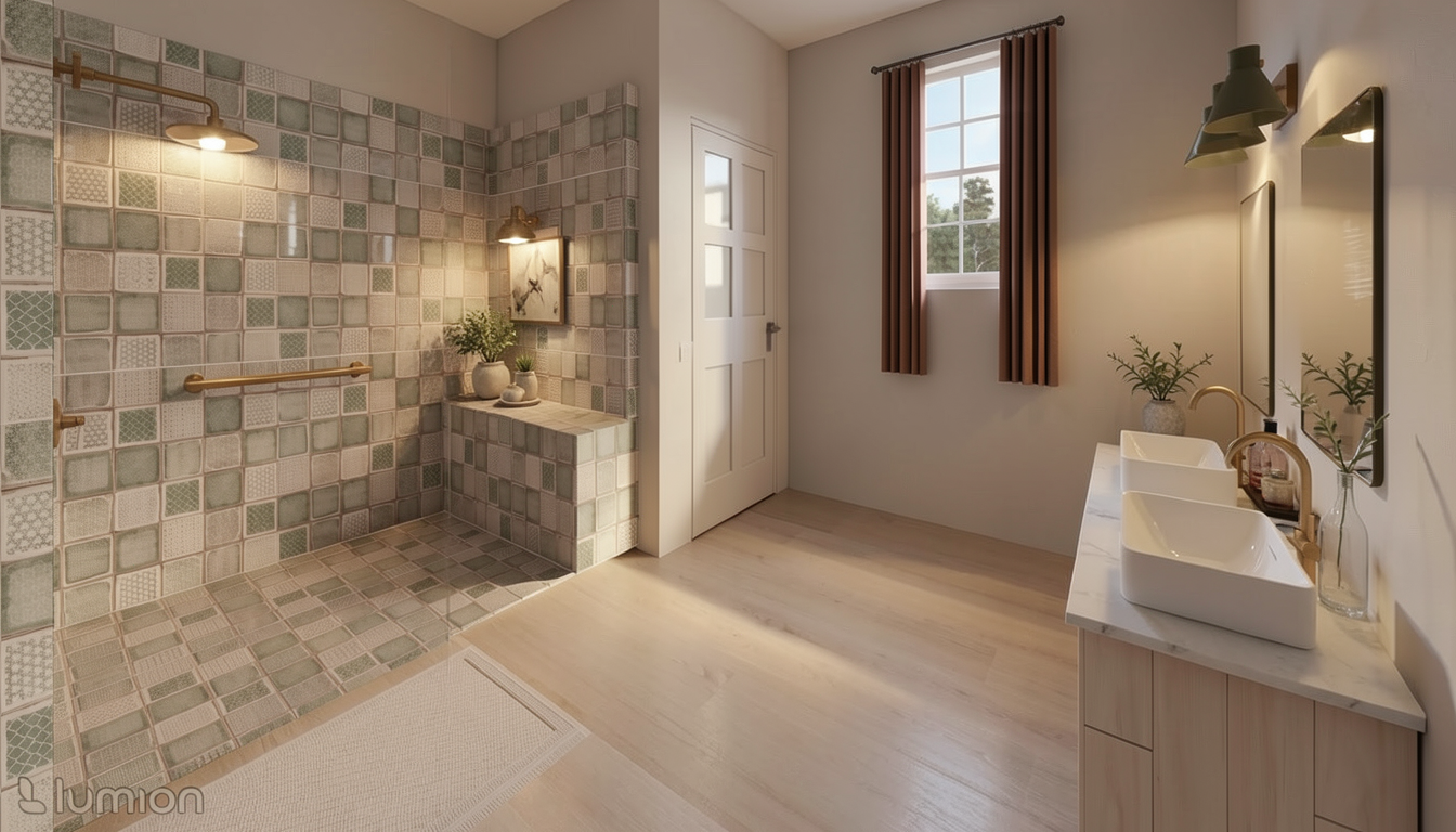 this is an already rendered picture of a family home add realistic textures to the surfaces without changing the colors or anything else add realistic decor on the sink area