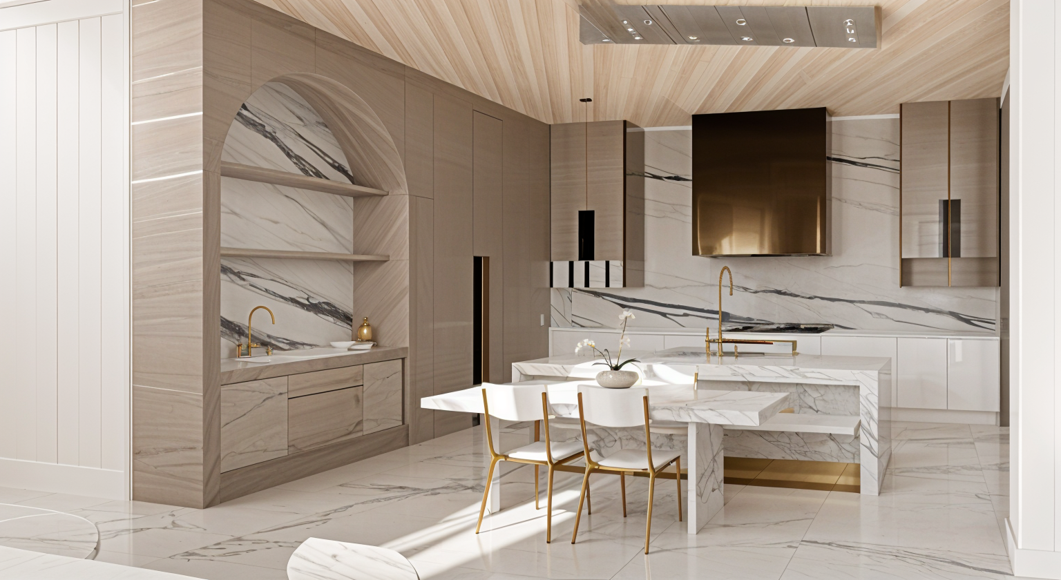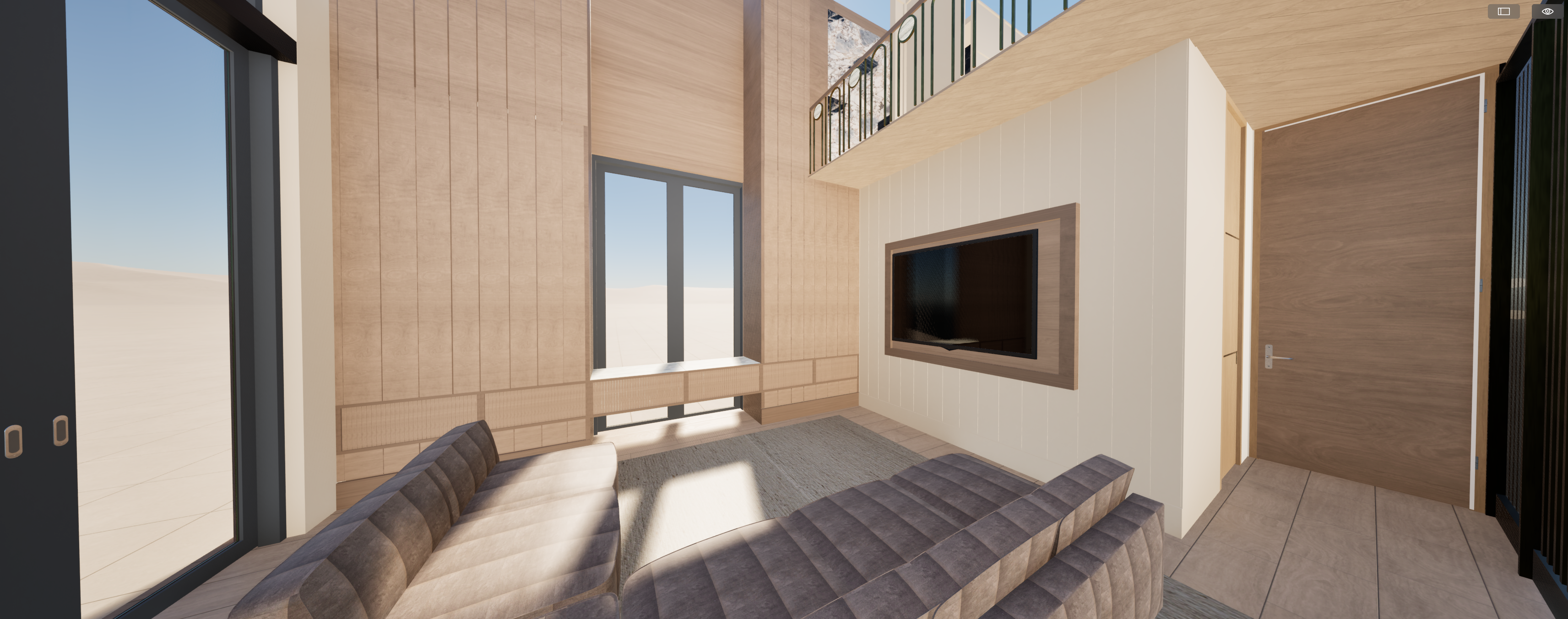 keep colour scheme the same add wood celing keep white shiplap on tv wall keep railing the same the cirls part in the railing is marble inserts