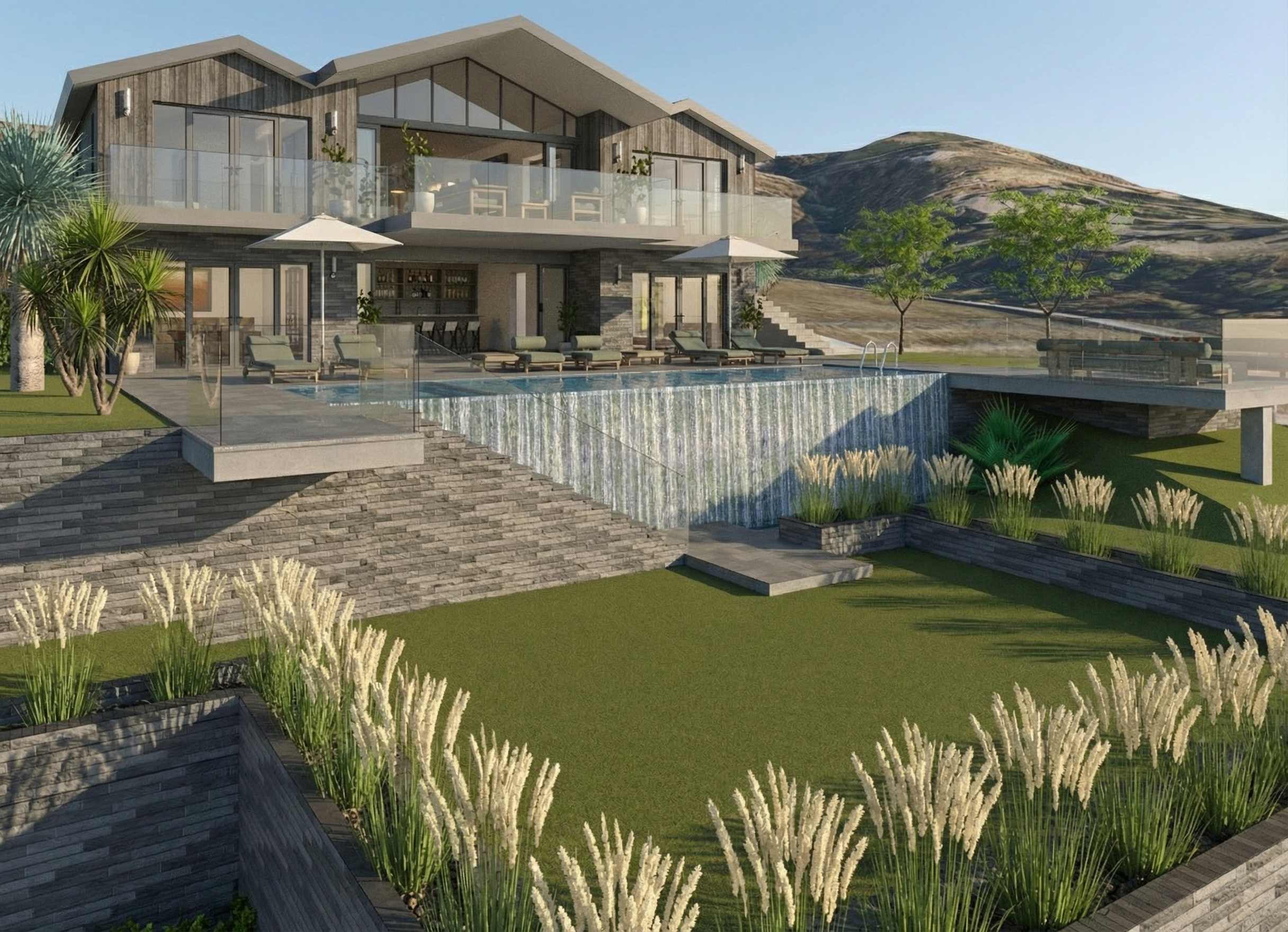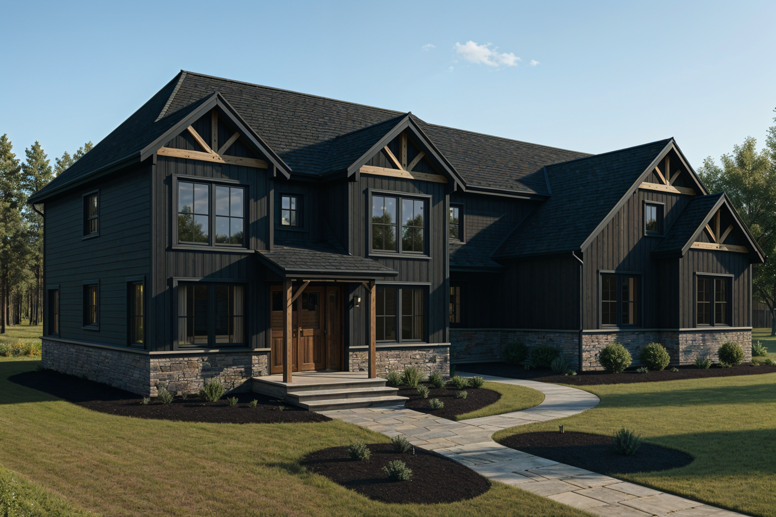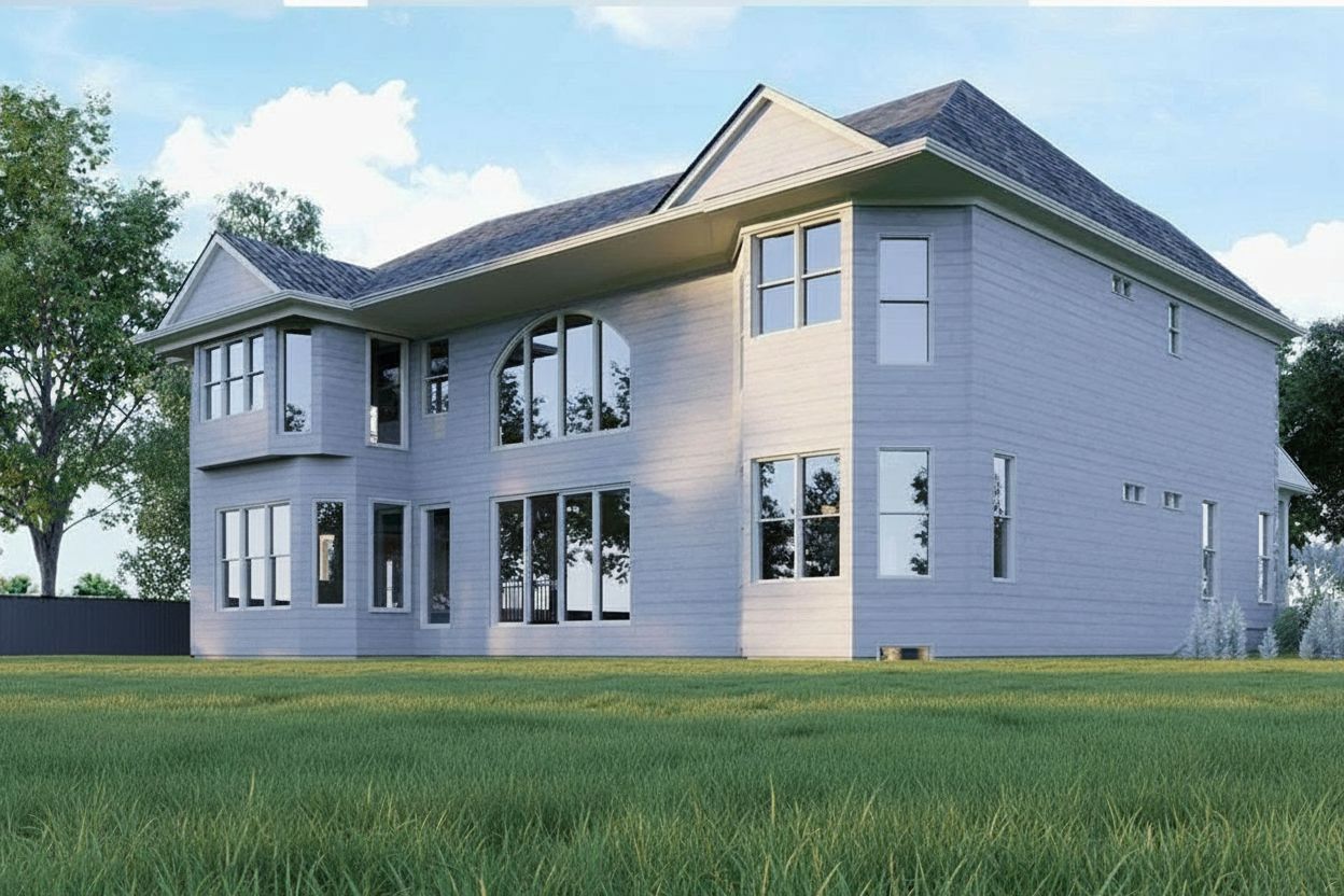 exterior shot i want to make the entire rear facade flat with no projections or bump outs while keeping all windows exactly where they are rendered from the current perspective with the same materials