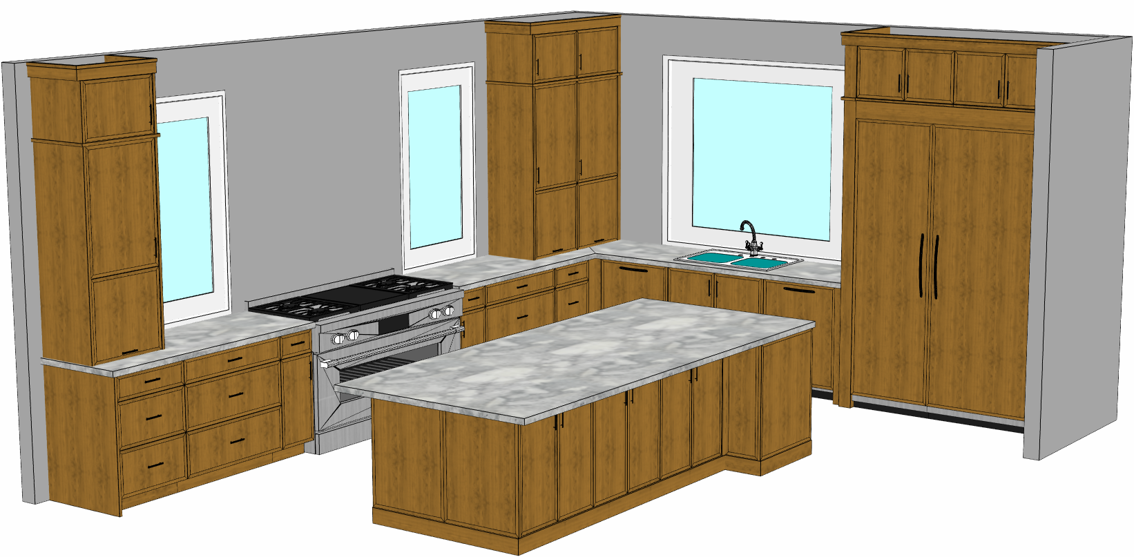 do not change the cabinets in any way preserve the exact cabinet colors materials finishes dimensions door and drawer styles hardware spacing alignment and all geometry exactly as shown do not alter the countertop shape backsplash appliances flooring lighting fixtures or wall structure only remove the construction materials clutter and mess from the scene clean the room and make it look finished and staged add a few simple tasteful home accessories appropriate for the style of the space but do not add or remove any furniture windows or architectural elements maintain the original lighting direction and realism enhance clarity and polish the photo while keeping the cabinetry and room design completely unchanged do not alter the lighting to keep the cabinet colors as they are in the image it is a window that is between the two bookshelves do not add any lighting to the cabinets add light wood flooring