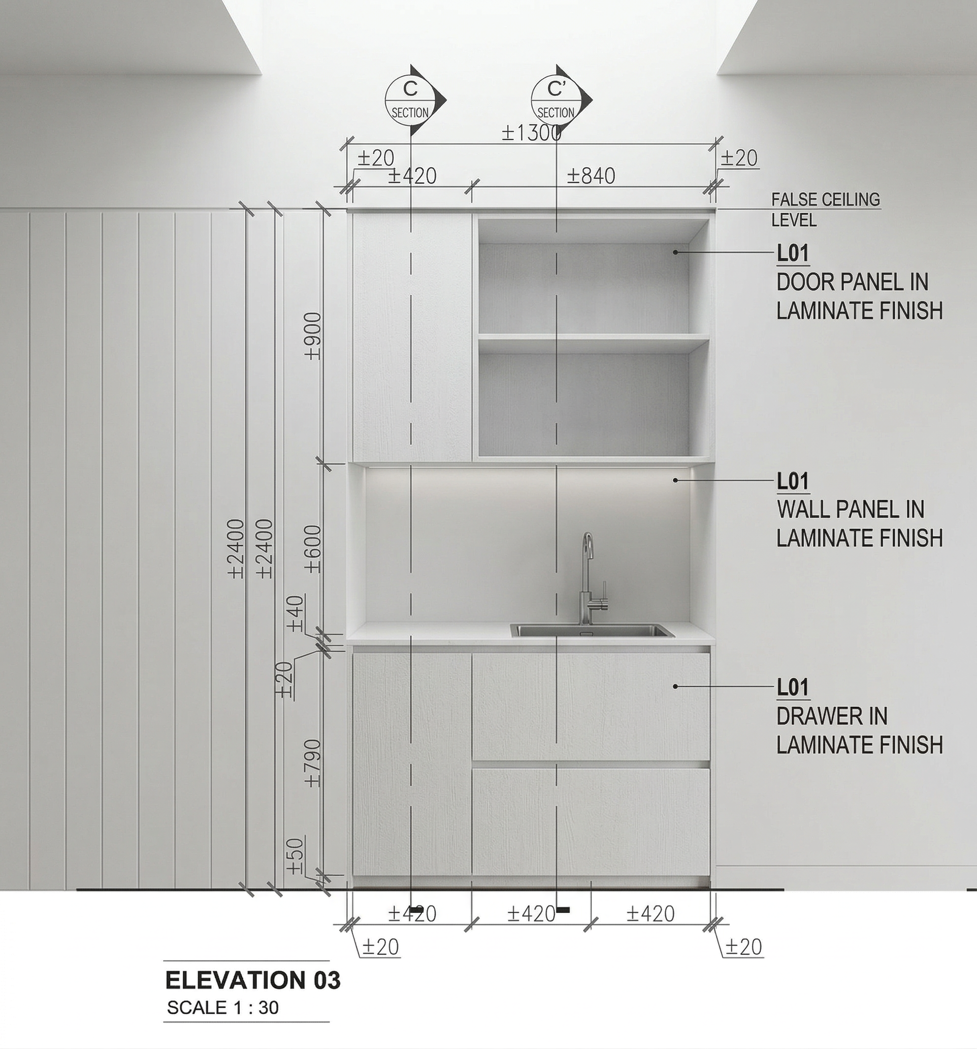 follow elevation design straightly render in white