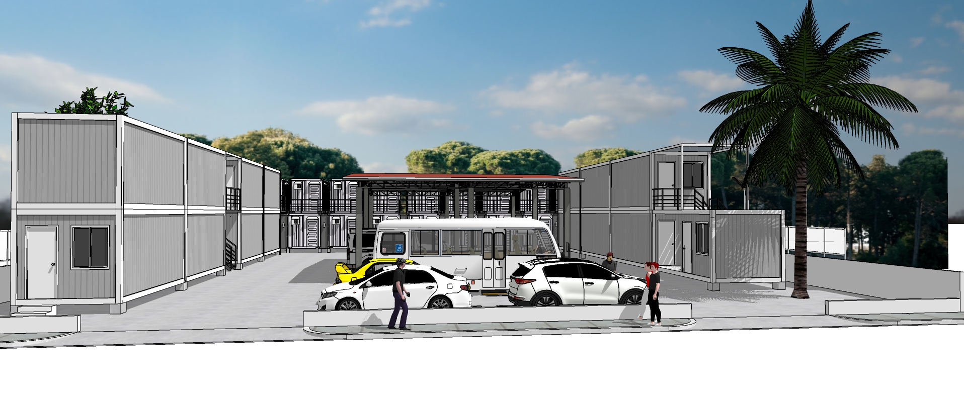 maintain the rest of the perspective but make the container van newly painted white