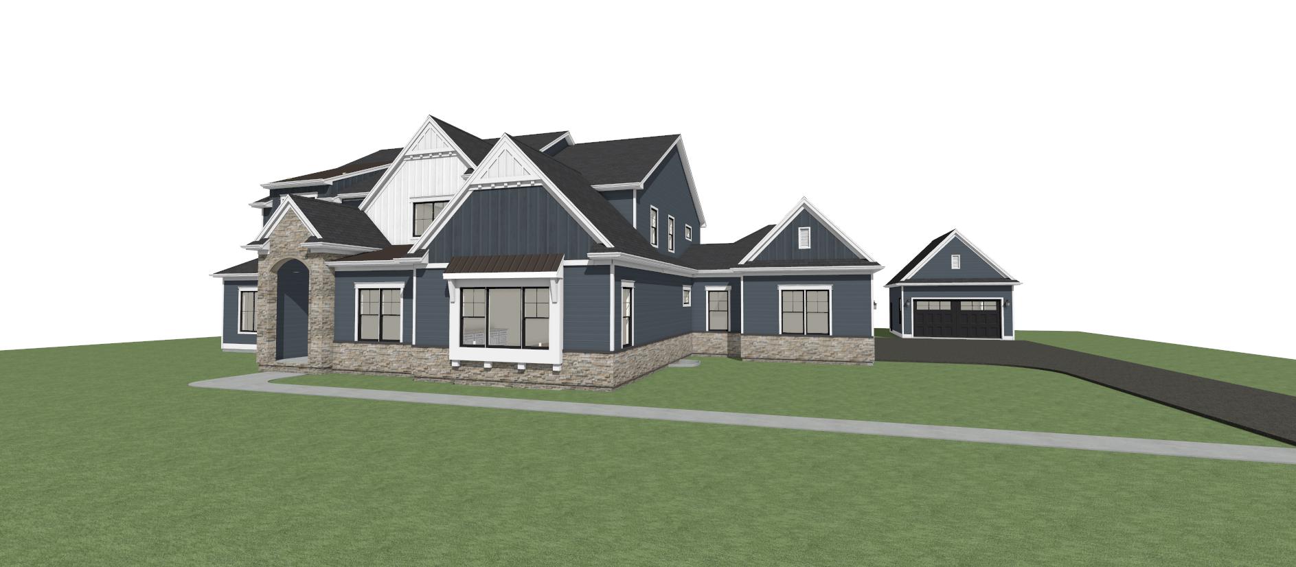autumn day with leaves blowing landscaping at front sidewalk going to front door potted plant on front porch