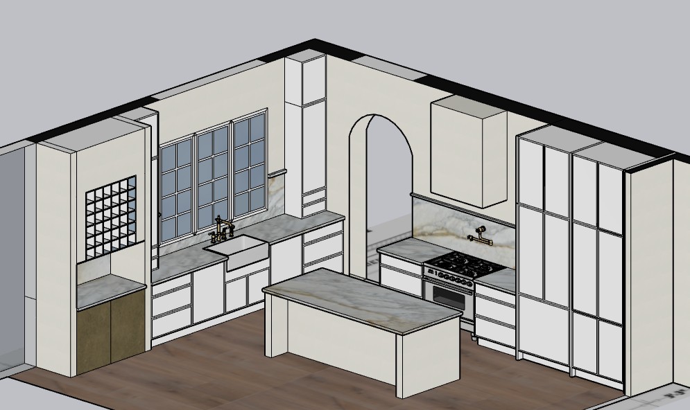 this is a kitchen drawn from sketchup the marble is calacatta borghini