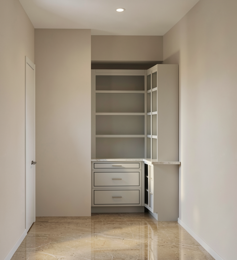 do the same handles on each kitchen element at the top and instead of a nature background let there be walls