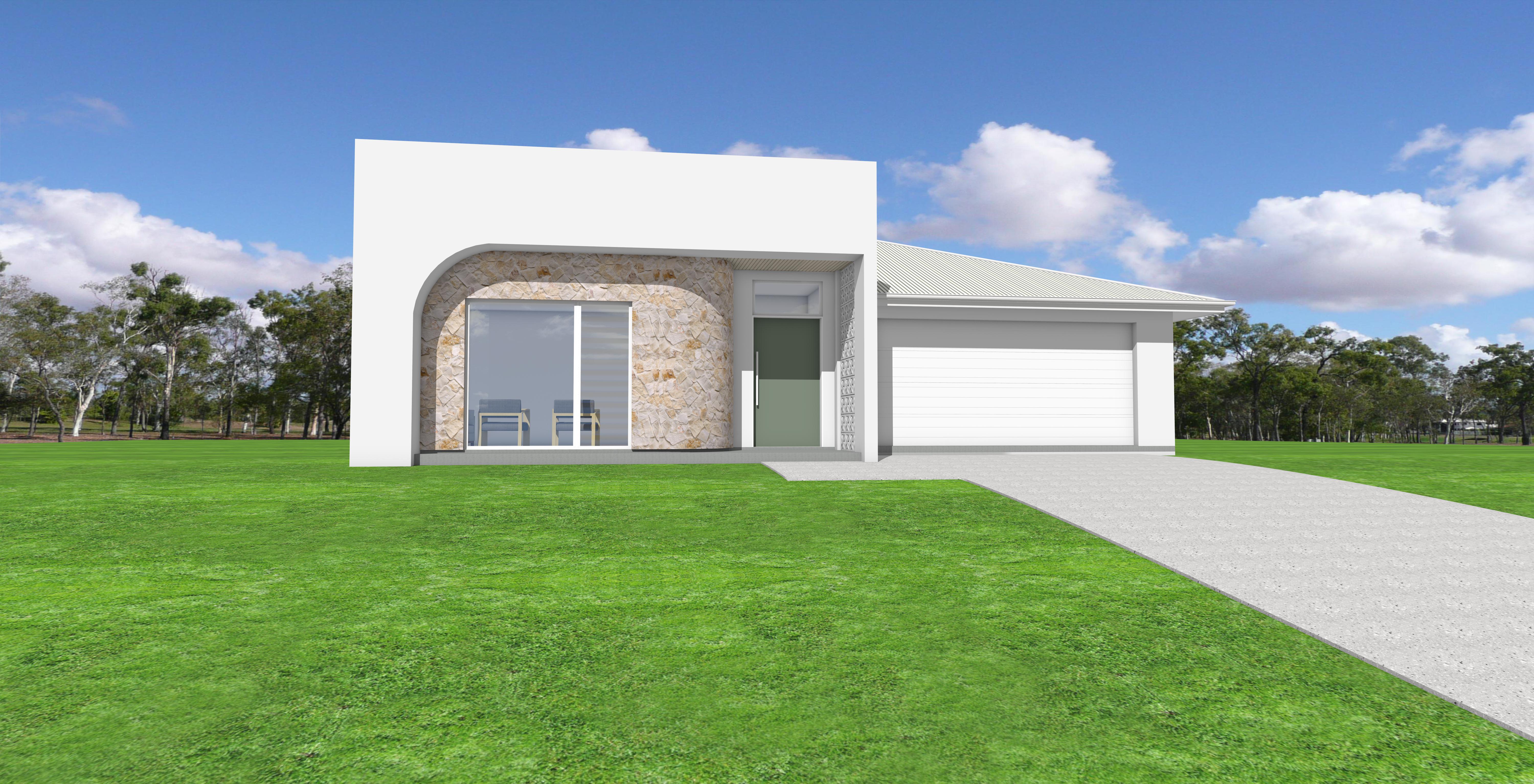 render and stone walls white steel roof reflective glass windows grass lawn with some minimal feature garden beds