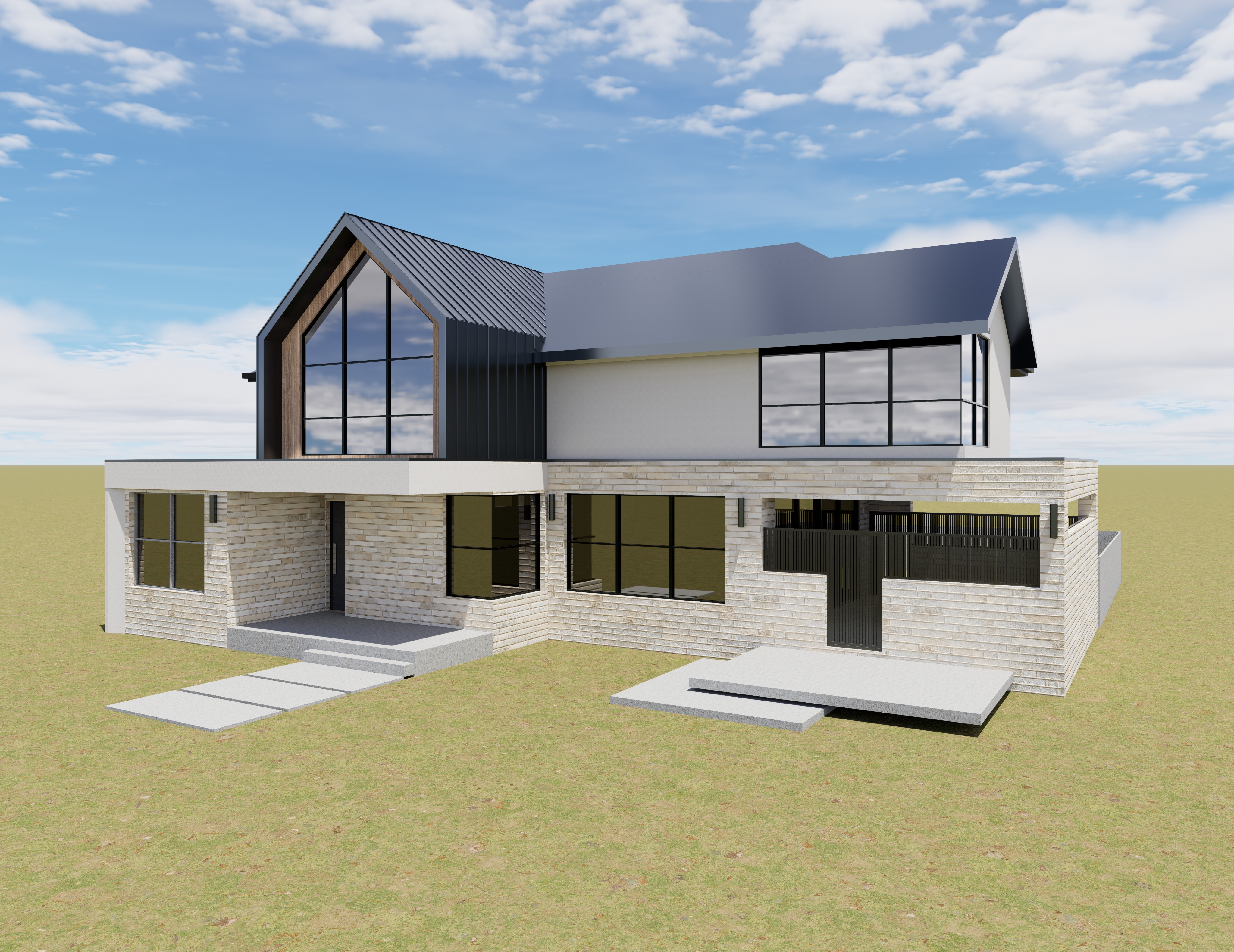 fix the landscaping and garden photorealistic architectural render of this image ultra hd 4k quality keep the materials the exact same just ensure everything is sharp and detailed the roof is a colorbond architectural cladding monumnent black is the colour