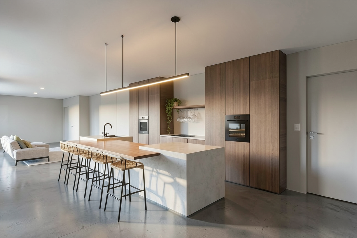 add lighting to light fixtures add natural light from windows and add kitchen items accessories to countertop and keep the ceiling the same colour
