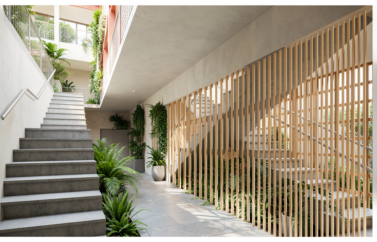 make more in a scandanvian modern material palette improve front landscaping
