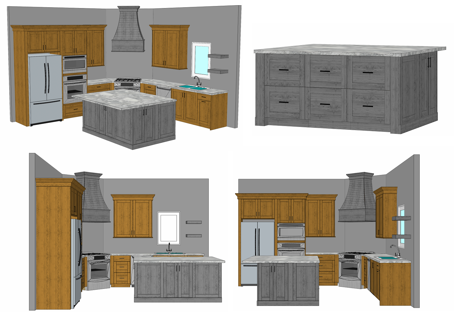 do not change the cabinets in any way preserve the exact cabinet colors materials finishes dimensions door and drawer styles hardware spacing alignment and all geometry exactly as shown do not alter the countertop shape backsplash appliances flooring lighting fixtures or wall structure only remove the construction materials clutter and mess from the scene clean the room and make it look finished and staged add a few simple tasteful home accessories appropriate for the style of the space but do not add or remove any furniture windows or architectural elements maintain the original lighting direction and realism enhance clarity and polish the photo while keeping the cabinetry and room design completely unchanged do not alter the lighting to keep the cabinet colors as they are in the image keep the white background just make it look realistic do not add any flooring the hood needs to match the island keep all of the graining