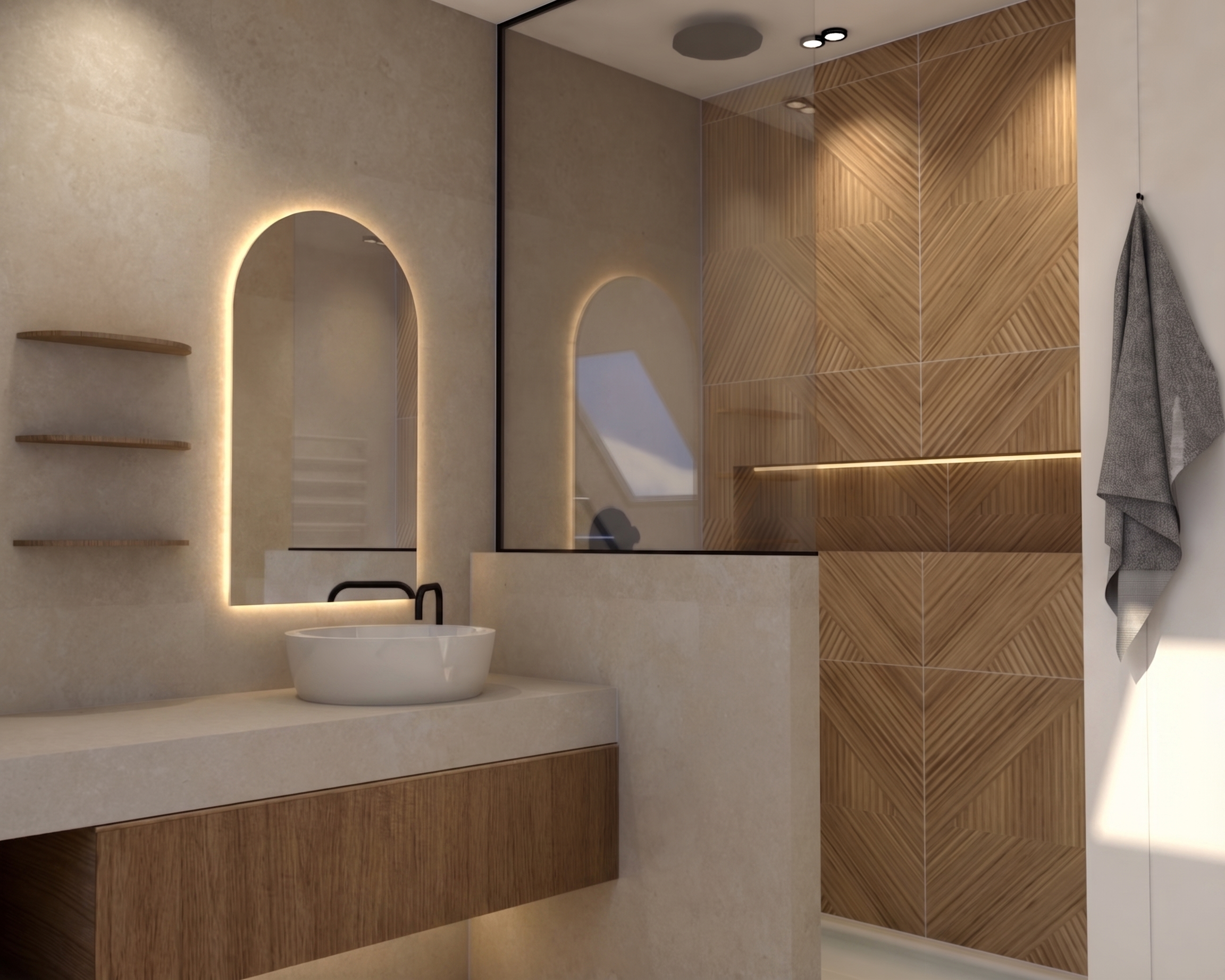 this is a proposed jimmy john s to be located in an airport transform the provided restaurant interior image into a high end photorealistic render with warm lit atmosphere and relaxed upscale energy while keeping everything exactly the same same proportions same equipment same ceiling curves same wall finishes same materials while making them look realistic and same spatial configuration the only material i want changed is the glass under the wood railing change this glass to a decorative metal panel design a design based on jimmy john s and chicago a chicago airport would be ideal add people with suitcases waiting for food and ordering a person can be ordering at the counter on the left side a couple people can be waiting in line and a couple people can be using the digital kiosks to place an order on the right side add an image to the digital kiosks so it looks like a real jimmy john s ordering screen and it looks like someone is using them to place an order add a few jimmy john s employees behind the counter one can be taking a payment one can be handing a bag over the counter to a customer and one can be in the process of making a sandwich it cannot be seen however there is recessed lighting above add 3 jimmy johns bags total to the wooden pick up shelves directly to the right of the digital order kiosks ensure the scene is well lit and the lighting looks realistic do all of this while keeping the camera angle existing materials wall signage and other composition exactly the same