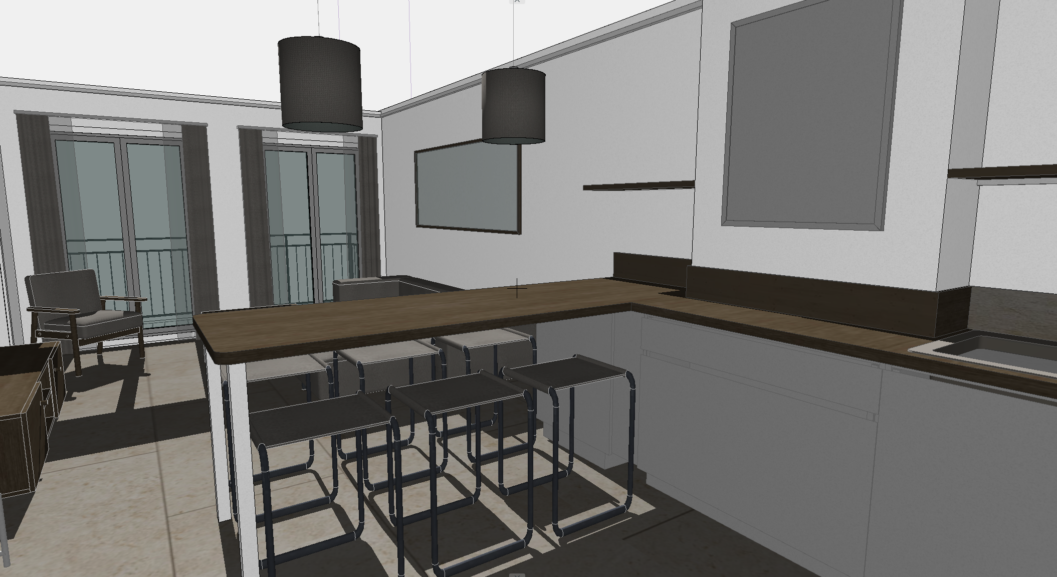appartement port grimaud le sol est en carrelage grand format teinte pierre beige les murs sont blancs esprit cosy boheme tous les meubles sont en chene la cuisine est blanc laqu et le plan de travail est en ch ne il y a grand tableau contemporain aux teintes claires remplacer les suspensions par omaja suspension en verre ambr et m tal dor mettre une plante sur tag re cuisine changer les 6 tabourets