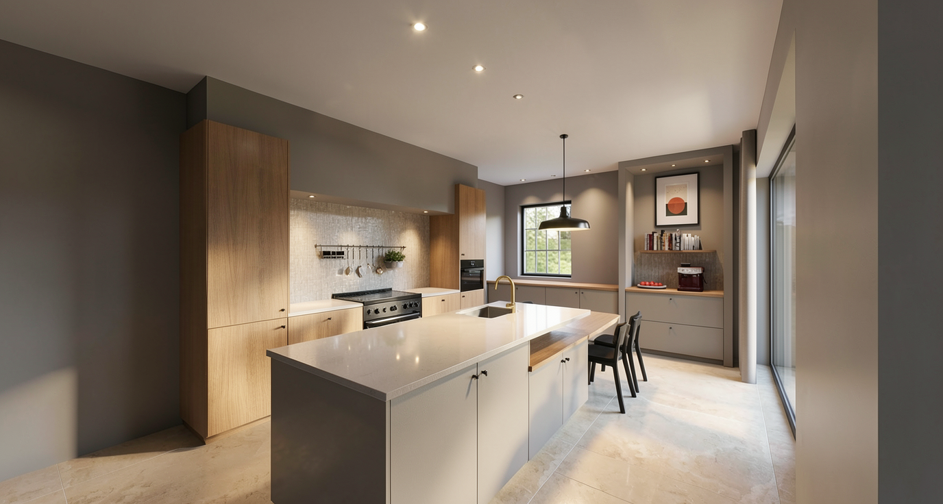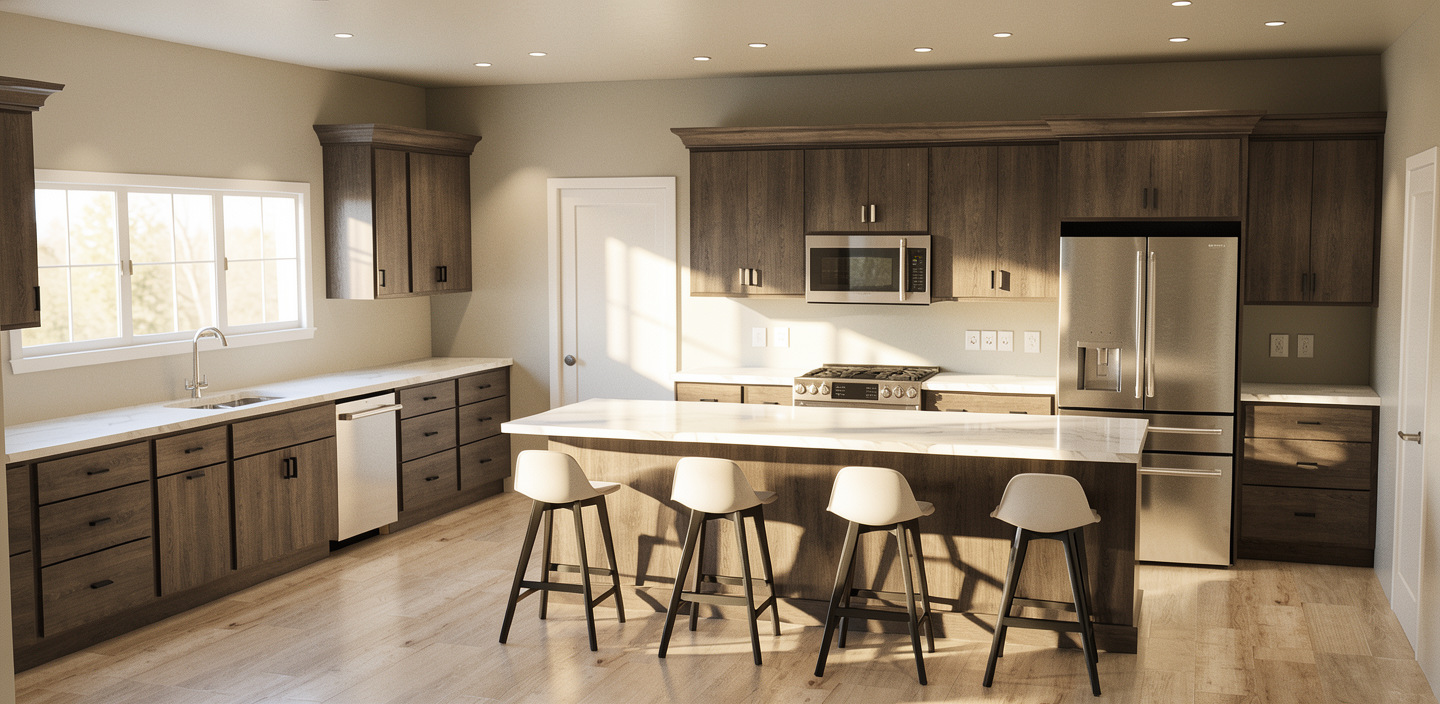 keep outlets to a minimum along stove sink wall cabinets to be a medium gray oak stain