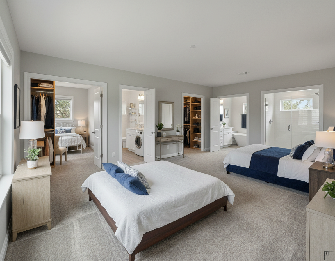 genau dieses rendering berarbeiten fotorealistisches innenraum foto exakt dieselbe perspektive und kameraposition wie das hochgeladene referenzbild 100 identische raumgeometrie exakt gleiche m belanordnung exakt gleiche verlegeart und richtung von platten wie vorlage exakt identische fensterpositionen mit gleichem ausblick durch die fenster weiches nat rliches tageslicht leicht schr g einfallende sonne durch die grossen fenster geschlossene r ume k nstlich ausleuchten sanfte realistische schatten blickrichtung ist nach osten sonnenlicht kommt von s den realistische materialien echte holztexturen stoff mit leichten gebrauchsspuren hochwertige oberfl chenreflexionen kleine gr npflanzen blumen in vasen auf tischen einbauen nat rliche farbwiedergabe leicht warme farbstimmung golden hour feeling das bild muss wie eine professionelle fotografie aussehen es soll ein echtes und reales foto sein canon eos r5 35 mm festbrennweite f 2 8 hyperrealistisch dslr qualit t raw aufnahme 8k aufl sung extrem scharf perfekte tiefensch rfe professionelle architekturfotografie