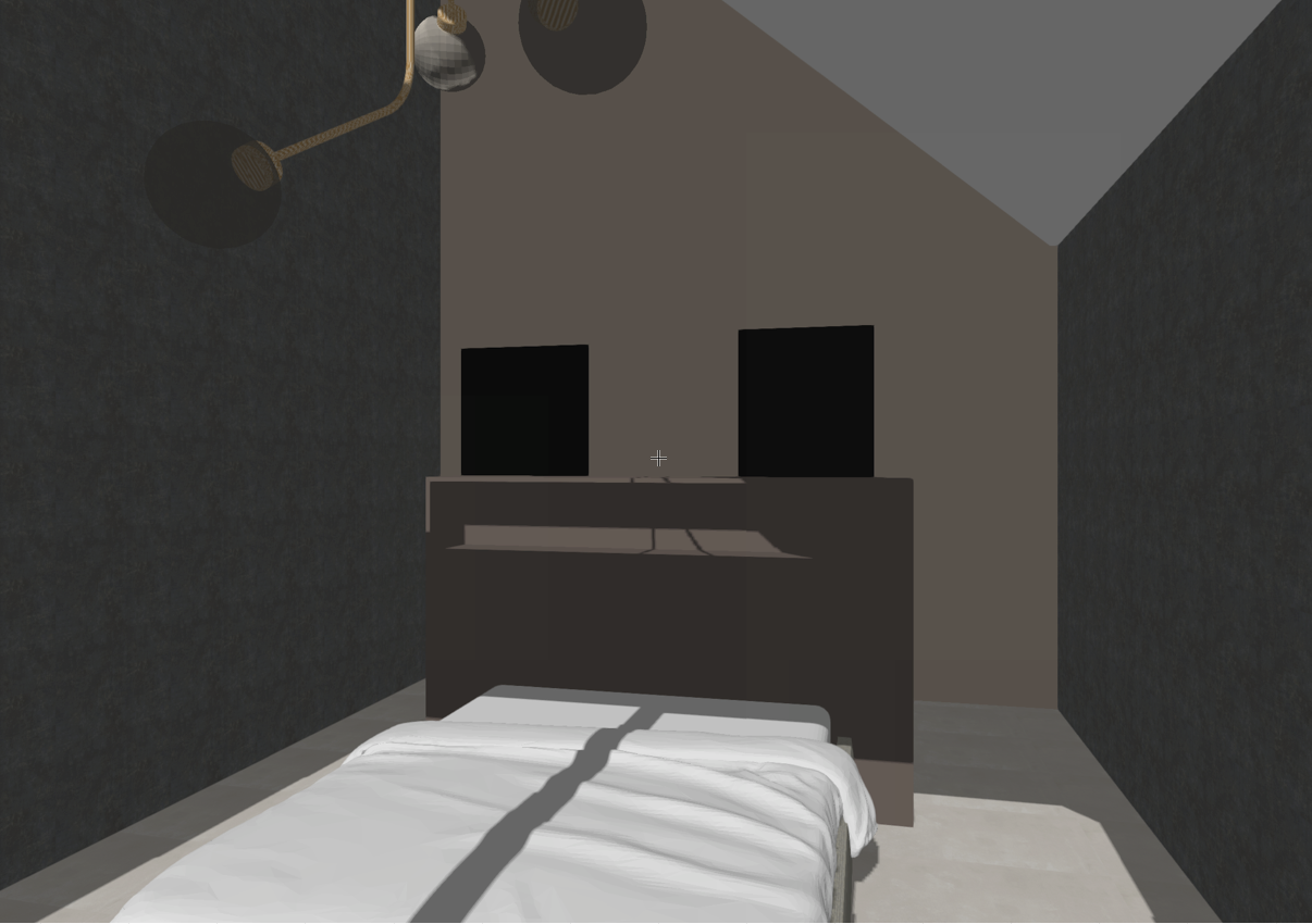 add natural light add light for the lamps add shadows add light to the bookshelf change the back wall color to a darker tone
