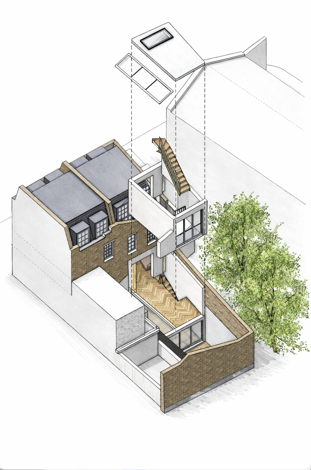 a conceptual sketch done as if in morpholio trace with black ink penwork sketch and very light textures and very soft shadows