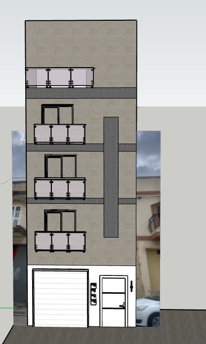 ultra realistic architectural render of a contemporary mediterranean apartment building facade based on the provided sketchup model maintain the exact geometry proportions and material layout from the original image preserve the original color palette strictly as shown incorporate clear glass balcony railings with subtle reflections and realistic transparency window and door apertures should be crisp white clean lined and modern apply highly detailed material realism stone texture subtle imperfections soft weathering and accurate light interaction travertine should appear refined and slightly matte with natural variation lighting should be natural mediterranean daylight soft warm sunlight slightly angled producing realistic shadows and depth include ambient occlusion and global illumination for depth and realism add a realistic urban residential context clean pavement subtle landscaping minimal greenery and a calm street atmosphere camera angle eye level or slightly low angle to enhance facade presence use a professional architectural photography style with balanced exposure sharp focus and realistic depth of field sky soft blue sky with light haze natural and not overly dramatic overall mood premium residential development warm modern mediterranean aesthetic clean minimal and inviting