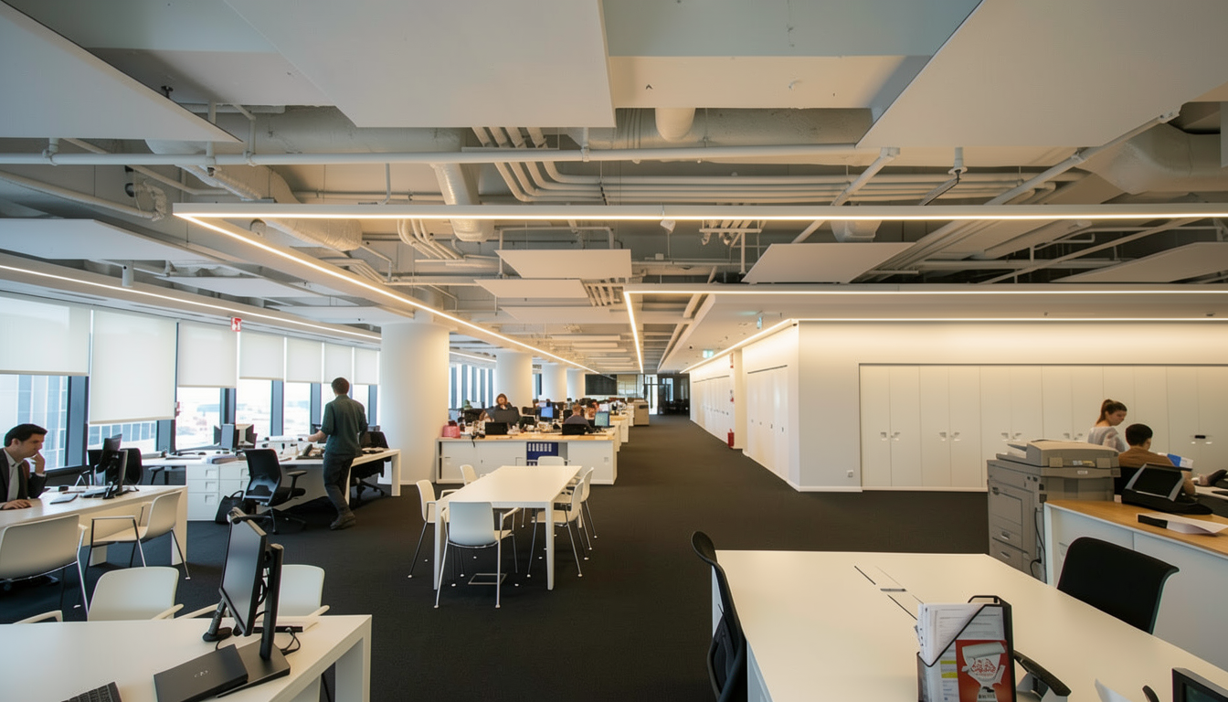 create ultra realistic images without changing any structure shape design or materials do not resize jpegs beige wood vinyl flooring plain off white walls beige wall panels add indirect light add halway view in the windows white frame window