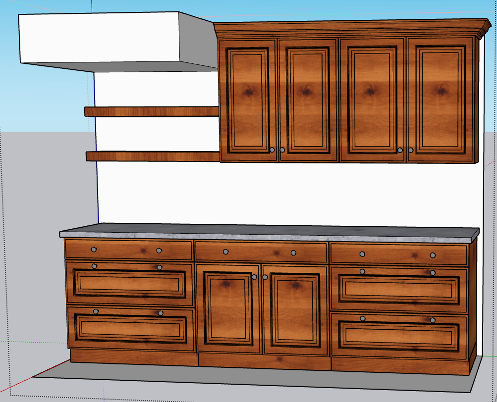 this is a wall in a nice cozy kitchen theres lots of natural light the cabinets are made of a medium light stained knotty alder all the cabinets have brushed nickel knobs
