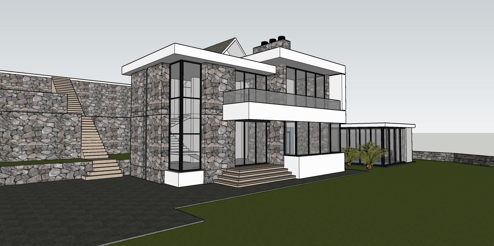 modernist exterior shot modern villa glass stone architecture