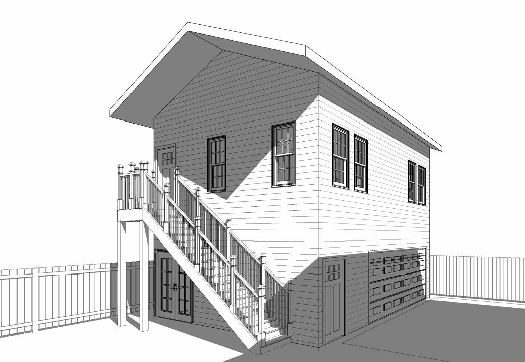 exterior shot the siding is blue light color the doors and trims are white soffit and fascia is white garage doors and exterior doors are white