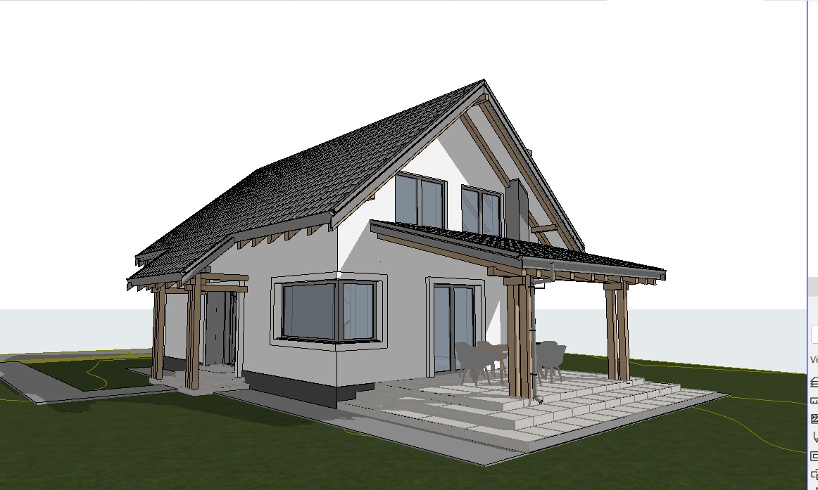 modernist exterior shot a beautifully rendered modern minimalist house set amidst a serene natural environment the house features angular wooden structures with a dark gray and black exterior large glass windows reflect the subtle hues of the surrounding landscape the wooden siding has warm earthy tones like soft browns and is combined with sleek contemporary black trimming the atmosphere is tranquil and the lighting is soft mimicking a gentle morning or late afternoon light the ground is adorned with patches of green moss and vivid yellow wildflowers adding a burst of color and life the surrounding trees are leafless drawn with delicate thin black lines indicating the late autumn season shadows of the trees create an intricate pattern on the house and the ground in varying shades of gray and brown the entire setting feels both modern and natural embracing simplicity and elegance architecture white facade keep windows from concept the background is forest please preserve the architecture and proportions of the building behind the building we have a slope and a forest