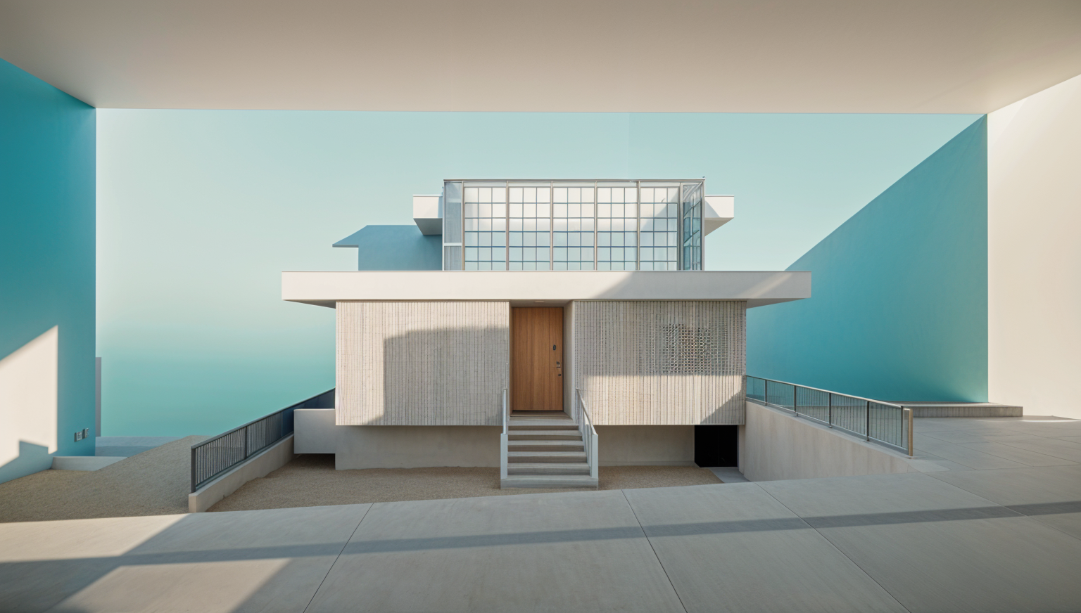 constructivism night shot render this in photo realistic brutalist but tropicalized style architecture