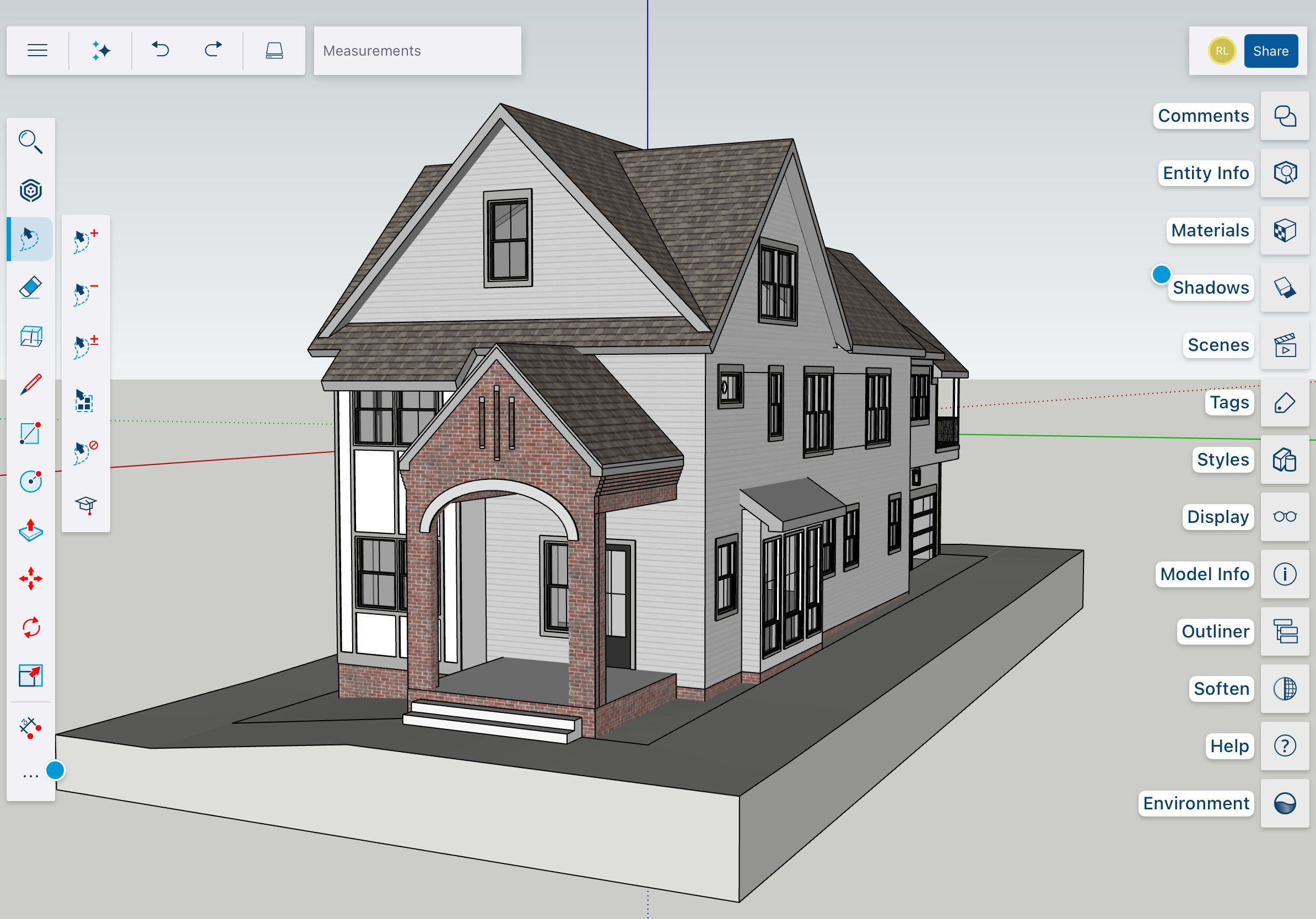 contemporary exterior shot create a photorealistic rendering of the attached sketchup image maintain geometry proportions and locations of materials front porch is an off white tumbled brick with fiber cement siding on the sides the context is a narrow urban infill lot with a concrete strip driveway down the right side the house to be surrounded by low landscaping assume a relatively flat lot similar sized houses are located on the adjacent lots to the left and right time of this rendering should be late afternoon golden hour architecture