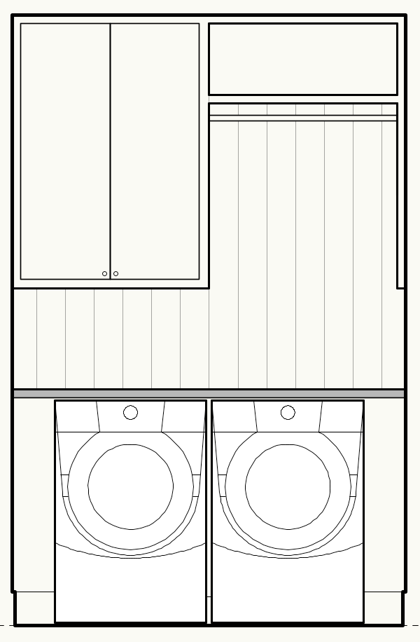 render utility room with concrete floors white tongue and groove walls and white cabinetry white washer and dryer taj mahal countertops