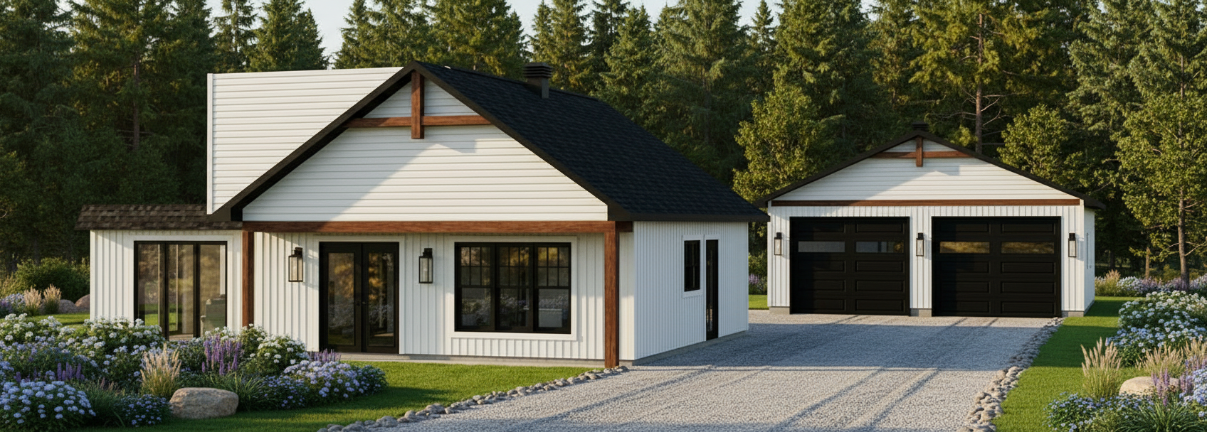 minimalism exterior shot a small rustic cabin in the woods with a weathered gray exterior and brown wooden accents the cabin has a cozy porch with a log railing extend the roof line out to the end of the porch with log posts at the corners holding the roof change the siding to a 1 2 log pine siding in a light honey color surrounded by bare leafless trees the setting is serene and evokes a sense of tranquility with soft golden light filtering through the branches casting gentle shadows the colors are muted and earthy featuring shades of gray brown and hints of faded green from the sparse grass the atmosphere is peaceful and serene capturing the essence of a quiet retreat in nature architecture