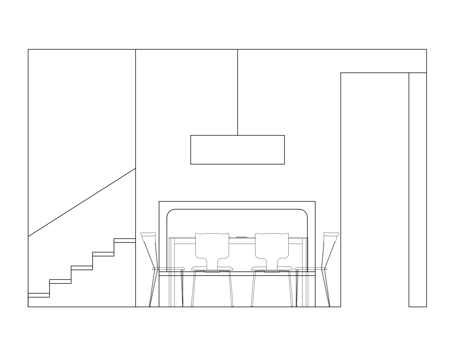 this modern home will have floating stairs with glass railing there is a built in bench seating with a leather backing the chandelier hanging will be organic and natural the wall will have tropical but neutral wallpaper