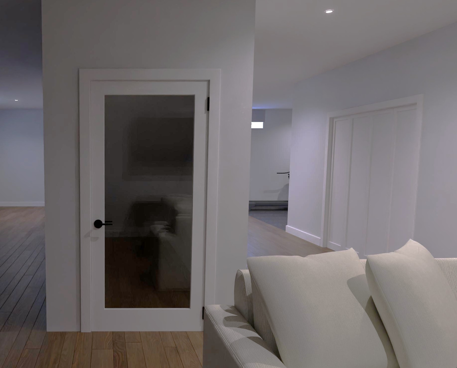 make it look like there is a wine cellar inside the glass door that runs against the interior side walls