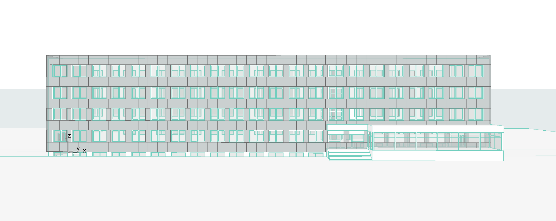 render grey panels as a matte translucent glass with a light green tint white wall in the background should be white