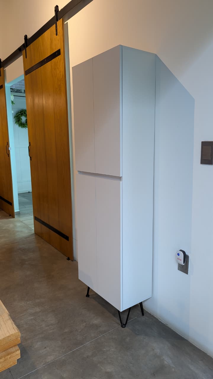 it s an independent pantry with shelves and organization spaces closed by doors and hiden pullers it is 1 80 meters high x 55 meters width x 28 meters depth in a contemporary style kitchen