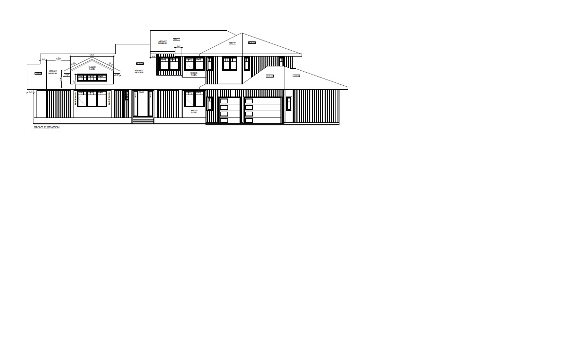 modern farmhouse front elevation with 45 degrees to garage upper floor comes forward over garage roof slate gray walls white with dark wood trim windows large with black frames deck wrap around door dark oak garage matching walls landscape xeroscape sky clear blue with soft morning sunlight overall atmosphere inviting cozy harmonious blend of modern architecture and nature
