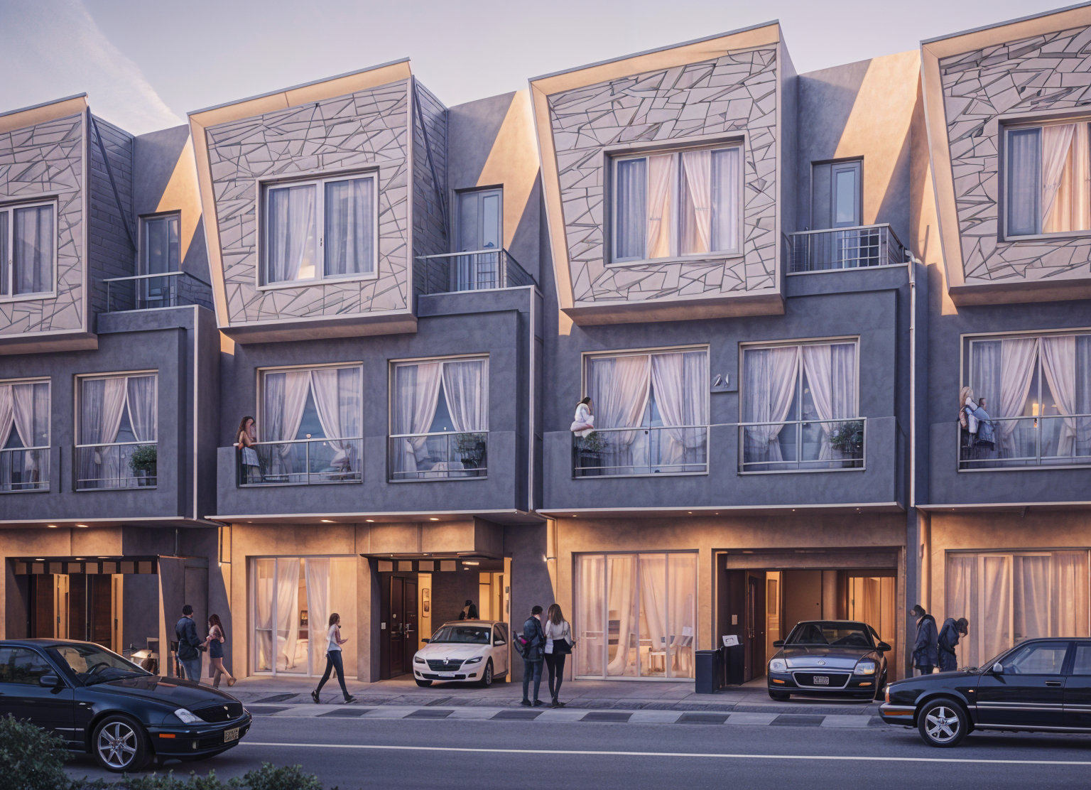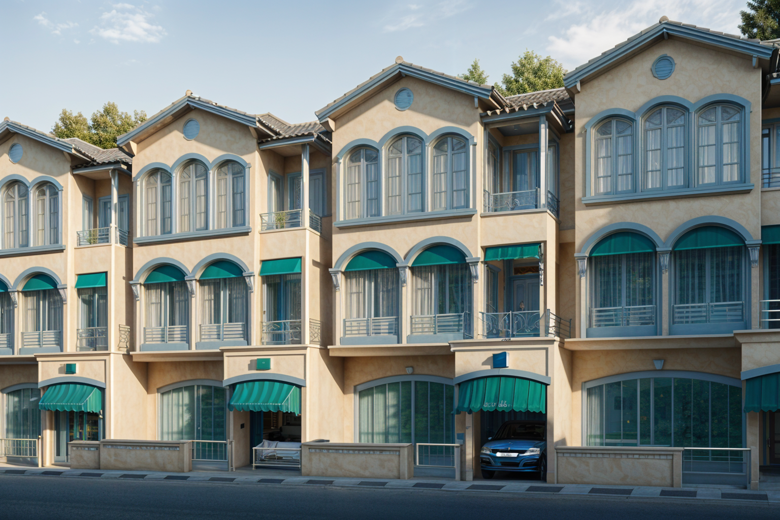 render to photorealistic image clear skies and landscaping to front yard keep the same colour scheme tint windows dark grey remove lines on front door