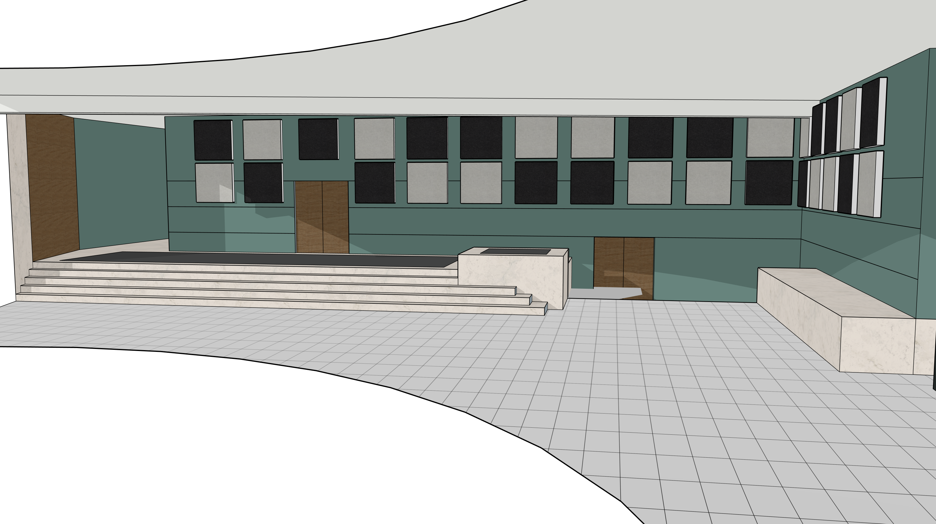keep colours original square elements on walls are acoustic panels fabric wrapped