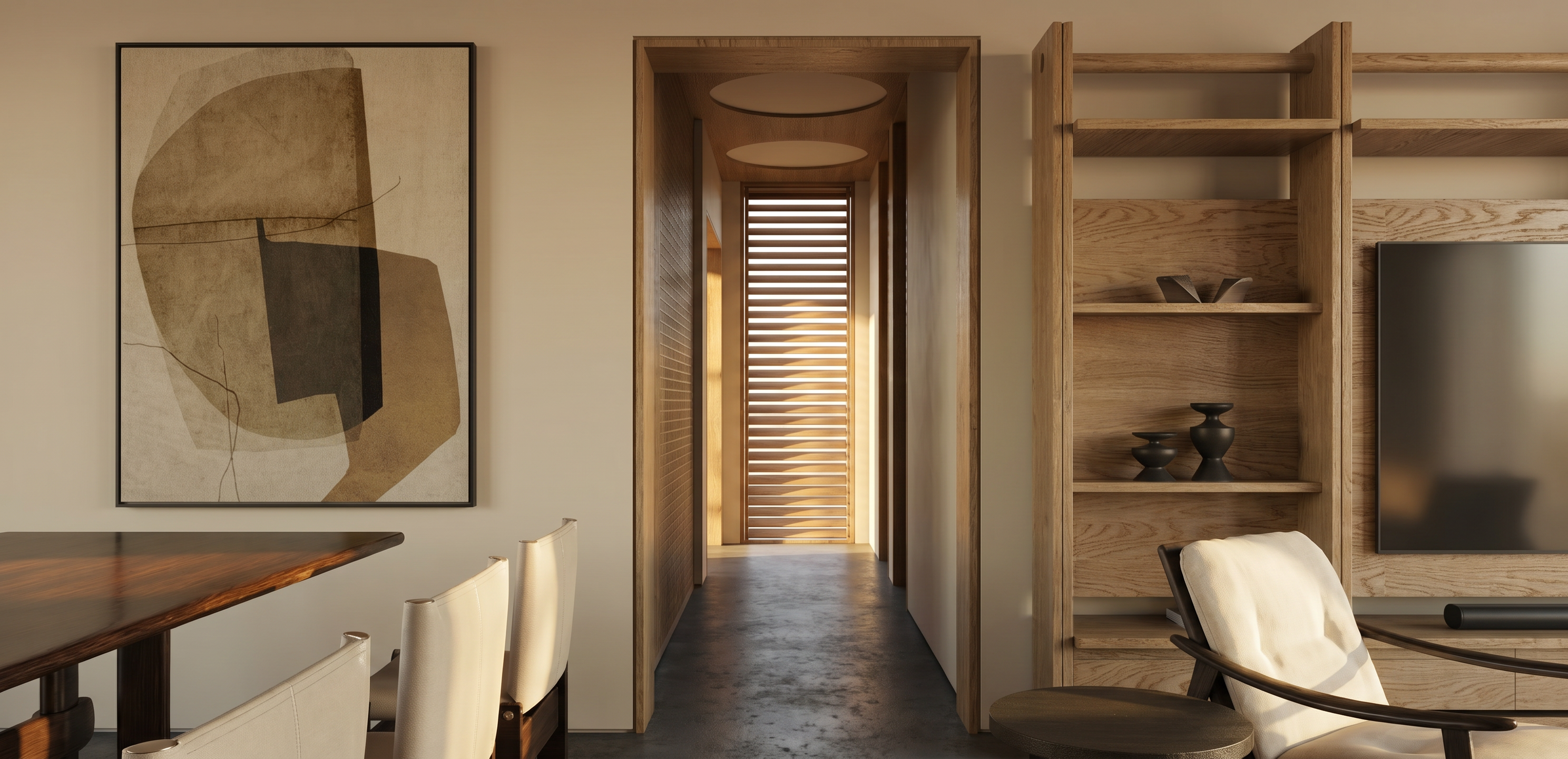 modernist exterior shot add landscape driveway and walkway make it like photo realistic architecture