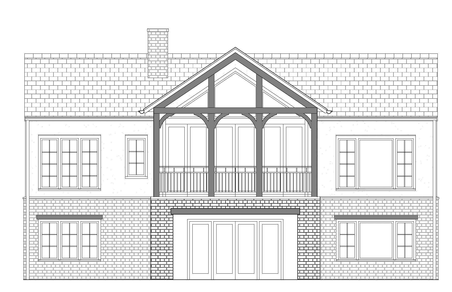 tan stone veneer gray slate roof cream stucco tan fascia and gutters on hillside