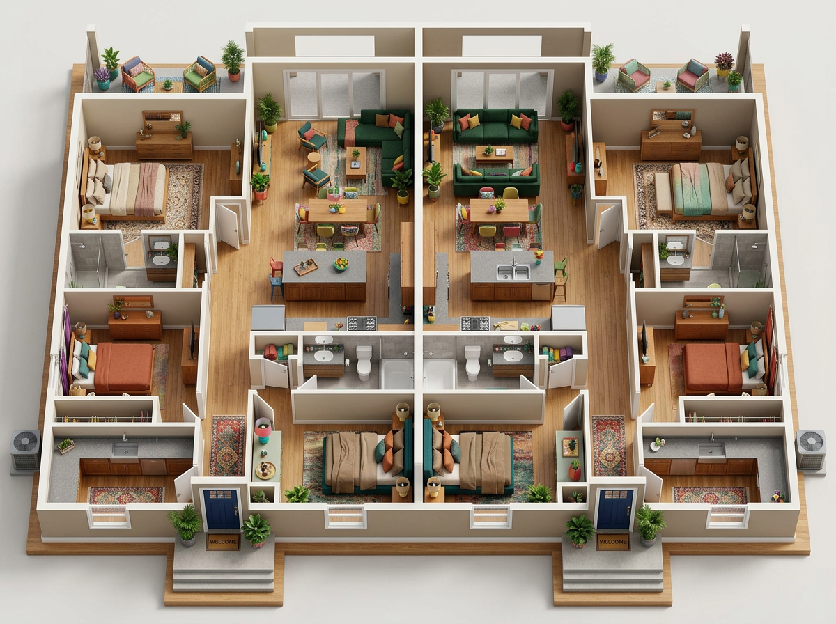 enhance this architectural floor plan for presentation keep the exact layout and geometry unchanged do not add or modify any elements improve linework colors and clarity only minimal clean professional architectural style all black and white